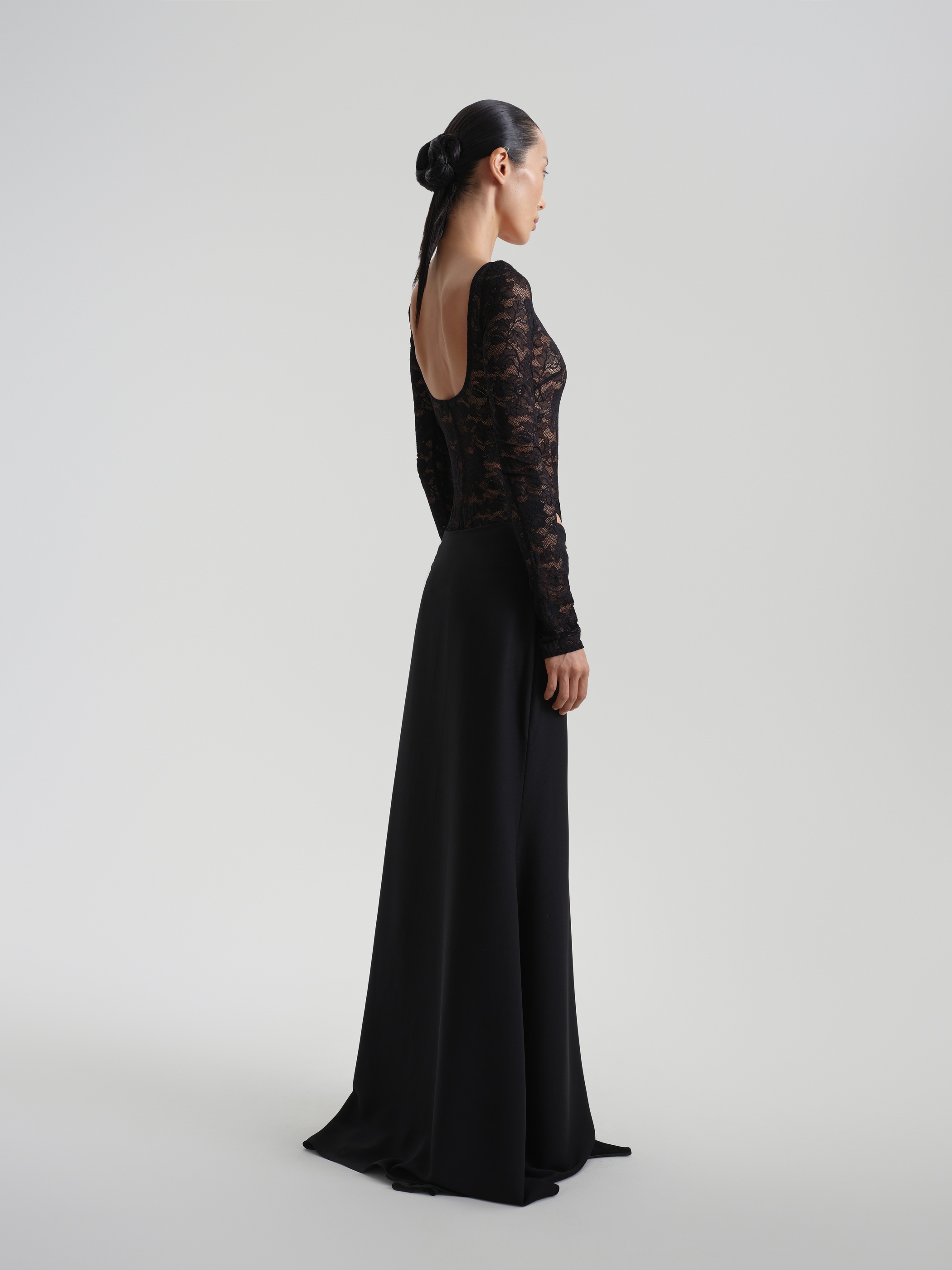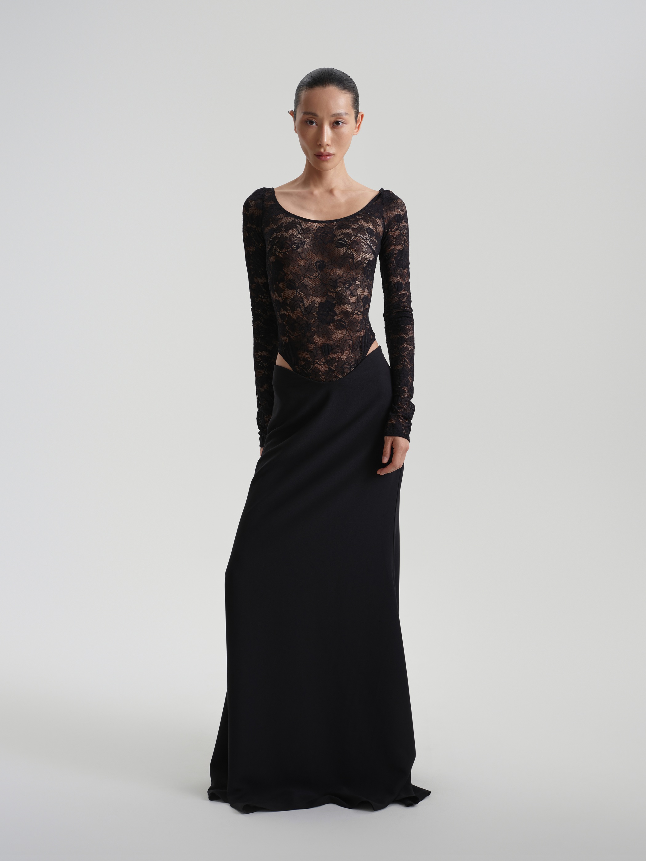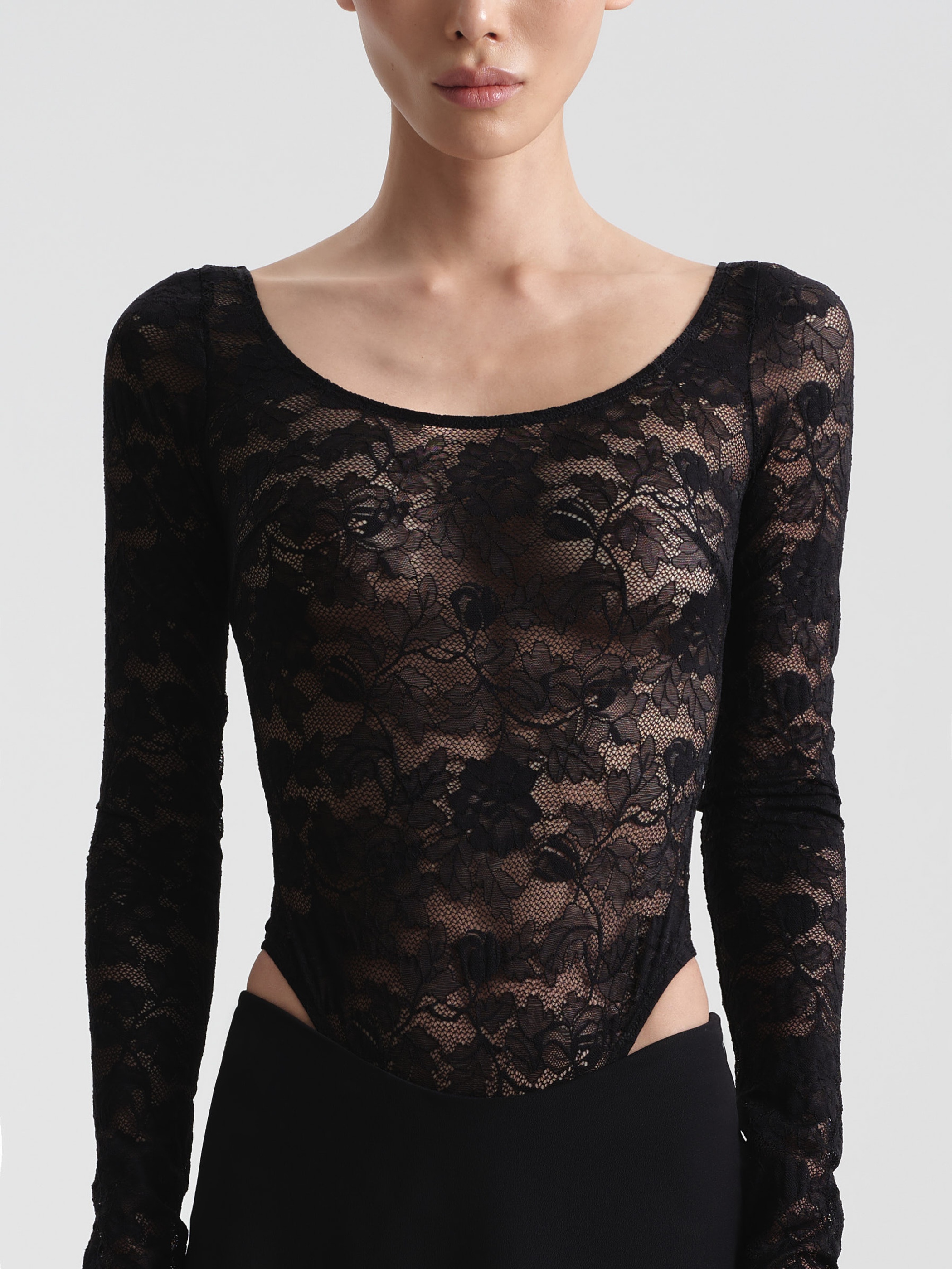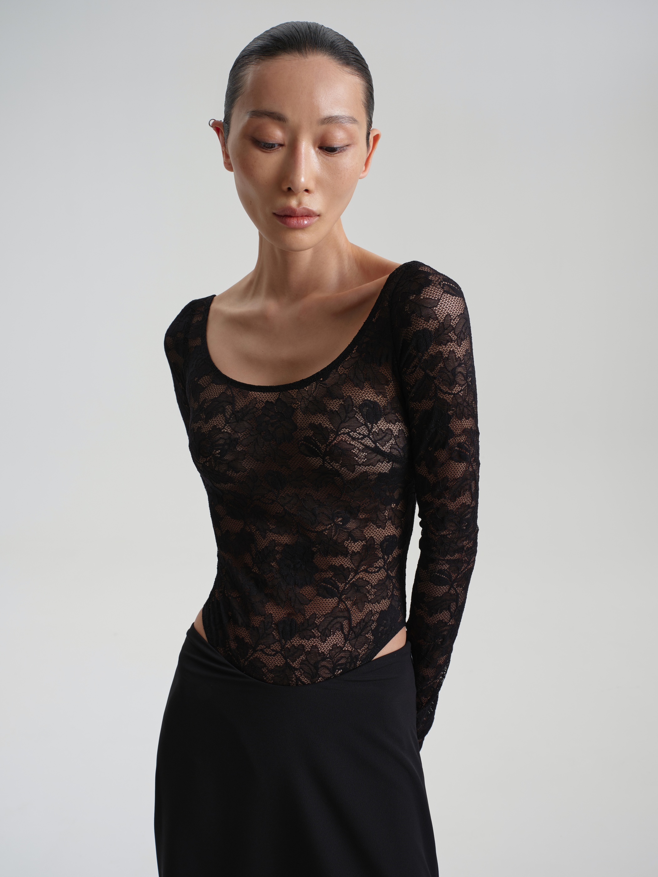 Облегающее боди из кружева станет главным элементом вашего образа. Тонкое кружево, открытая спина, прозрачность – главные элементы этой модели. Застежка по нижним концам плавок на бельевые кнопки делают боди максимально комфортным в носке. Изделие можно стилизовать в многослойных образах, сочетать с брюками или носить соло.