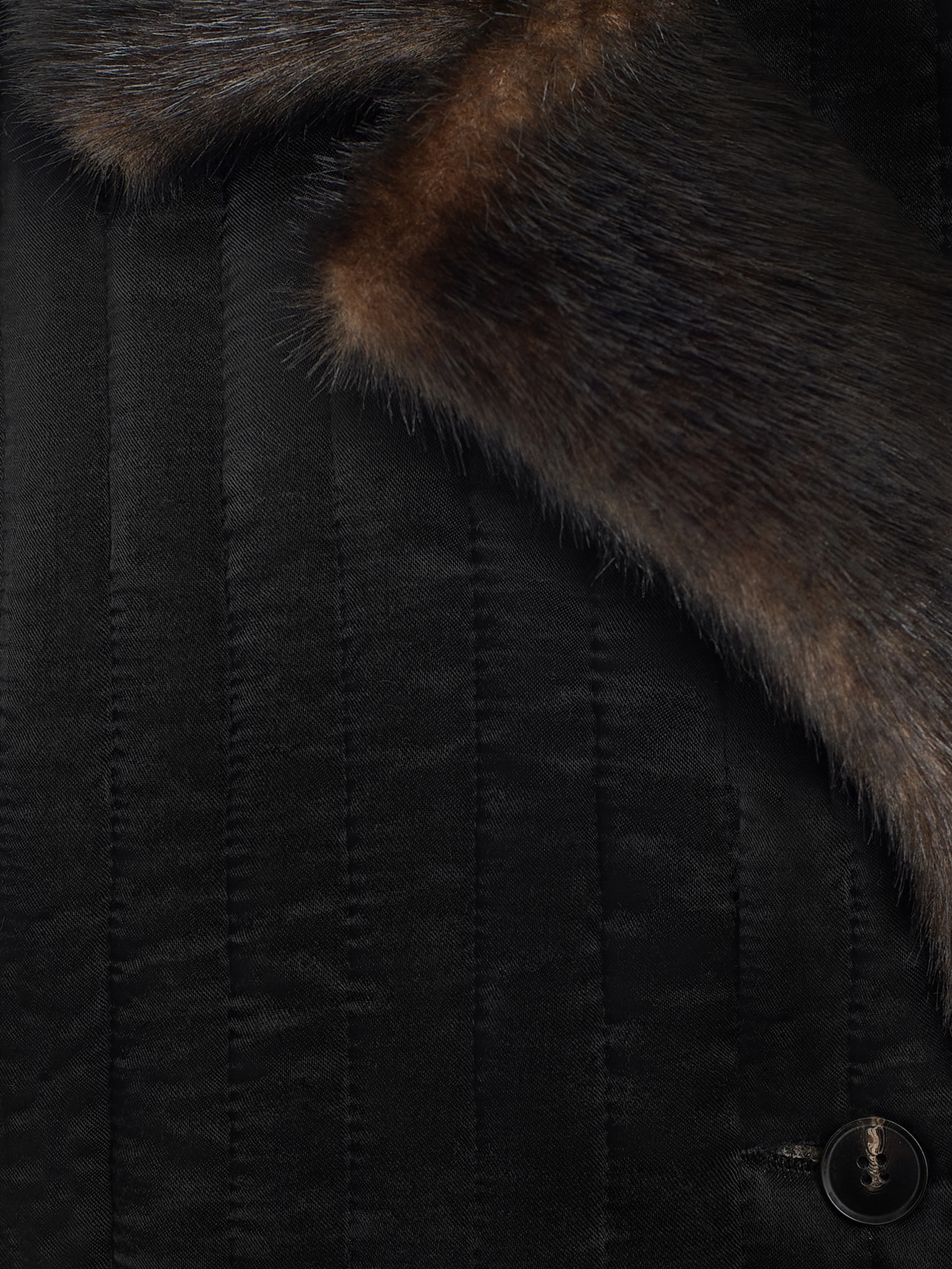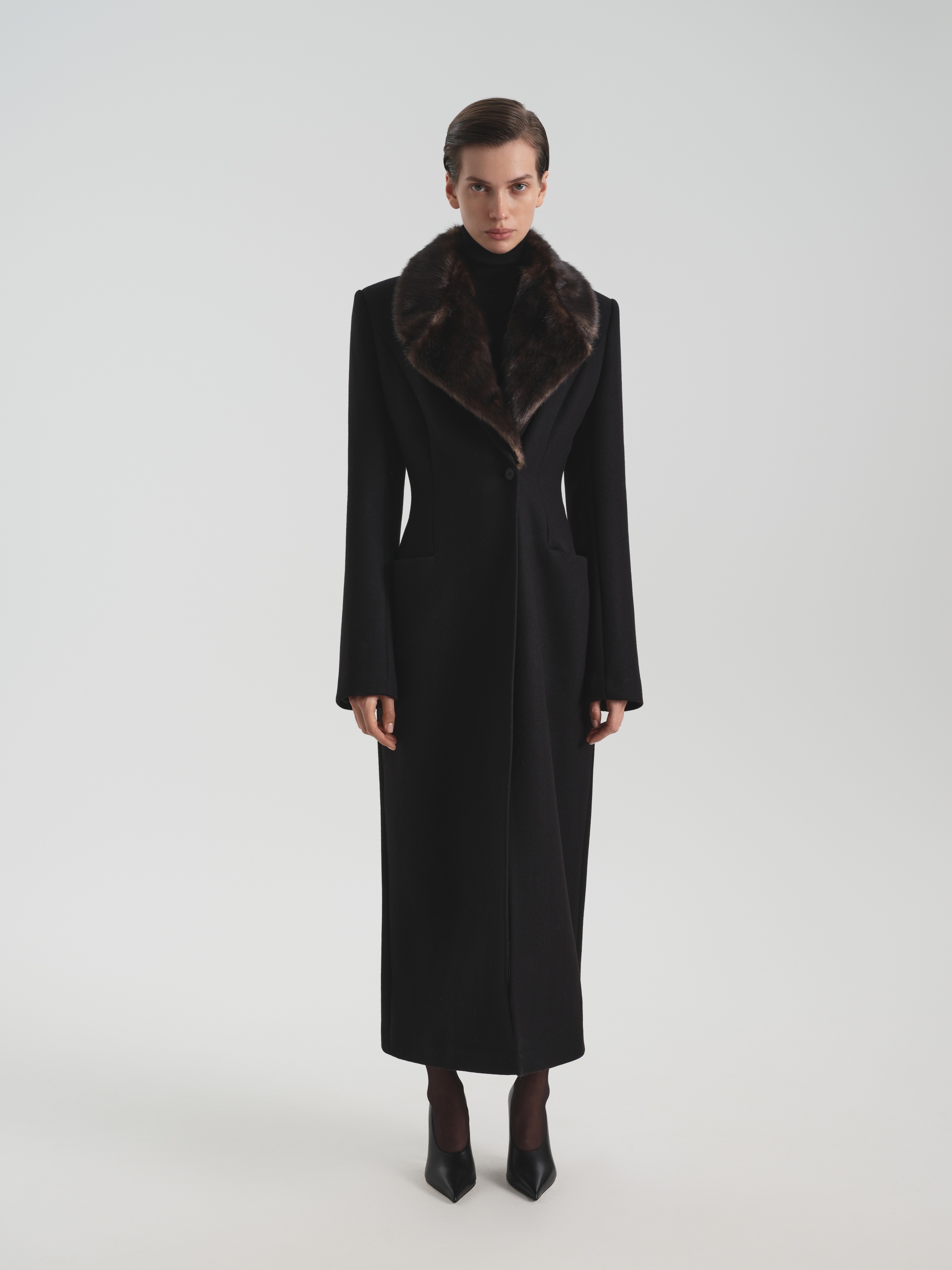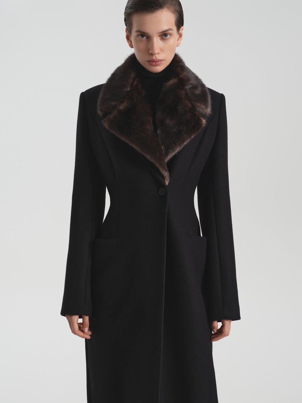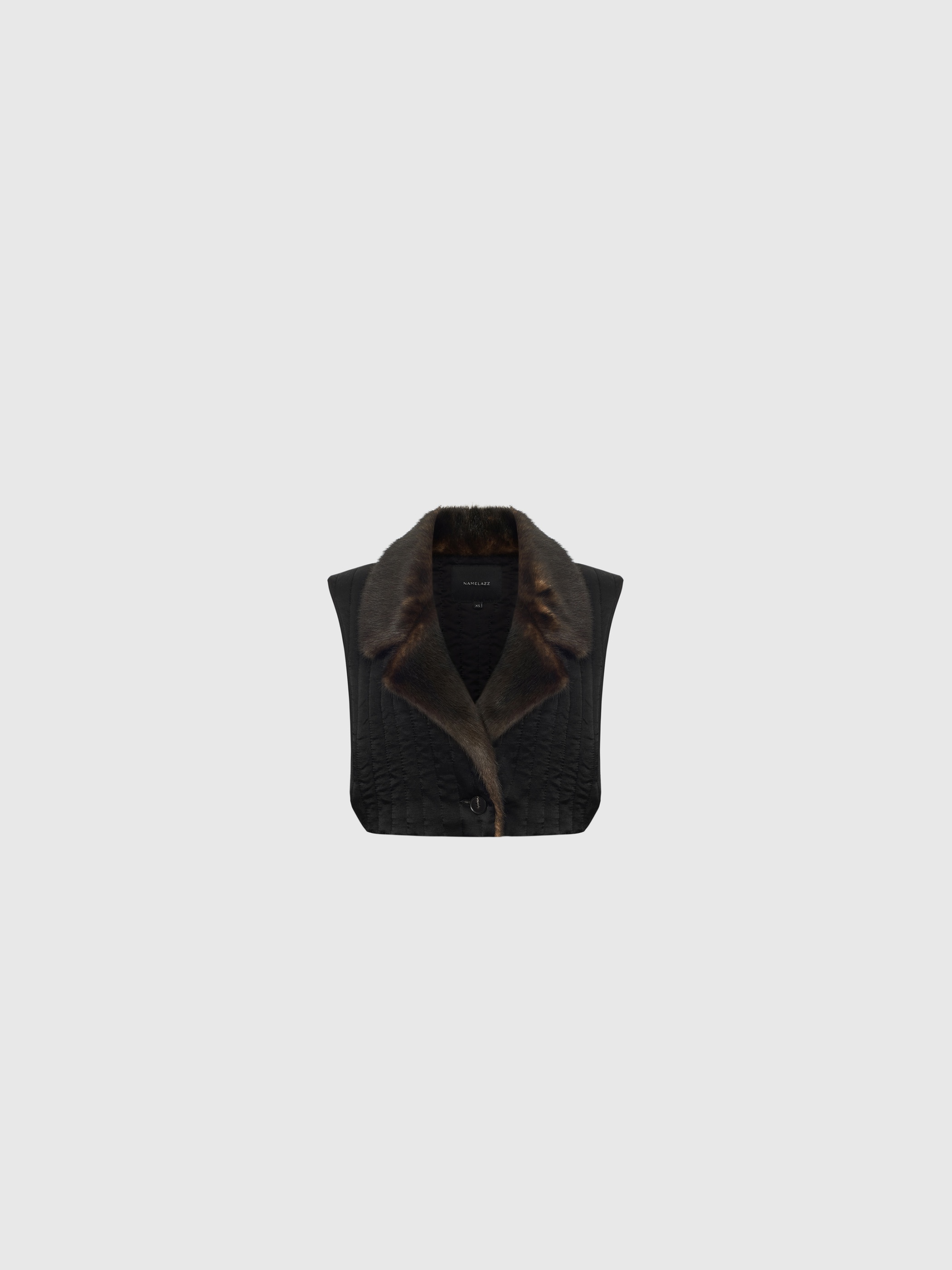 Изделие продолжает развитие манишки как знакового для Namelazz аксессуара. В новом прочтении она обретает сезонность и становится дополнением к пальто или шубе.