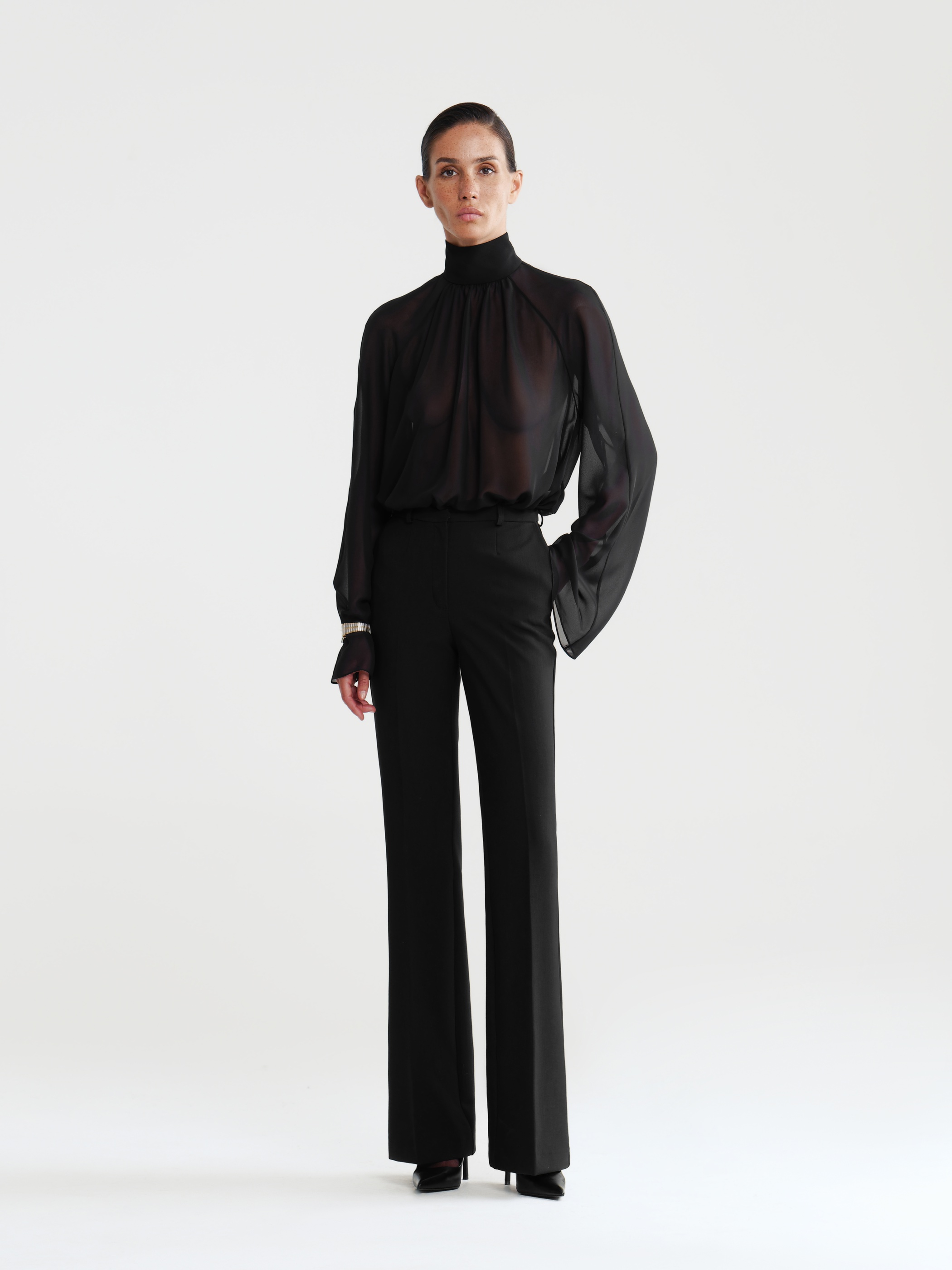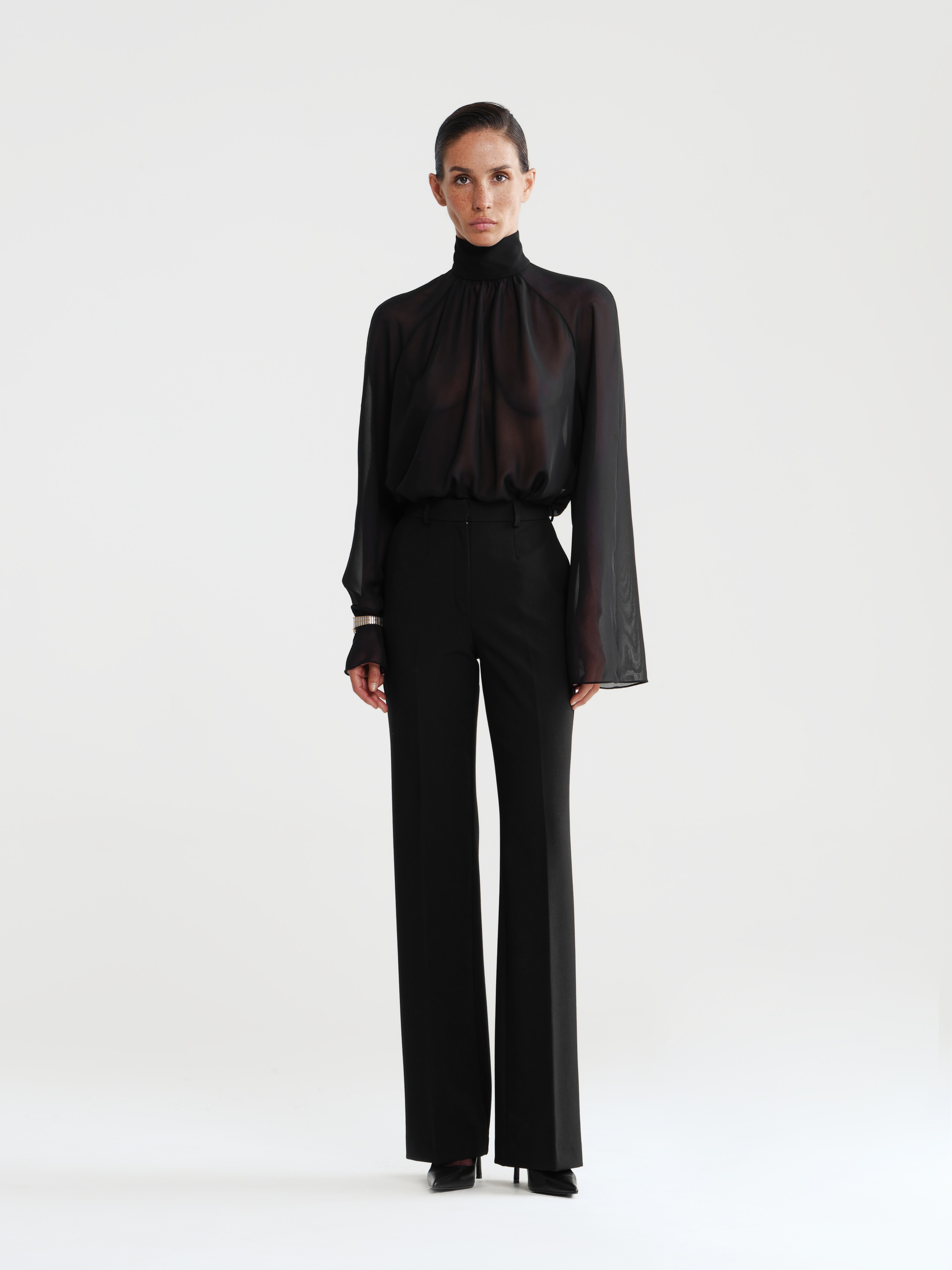 Брюки клеш - беспроигрышный способ сделать повседневный образ комфортным и элегантным. Плотное прилегание по бёдрам, заутюженные стрелки и расклешённые брючины визуально вытягивают силуэт.