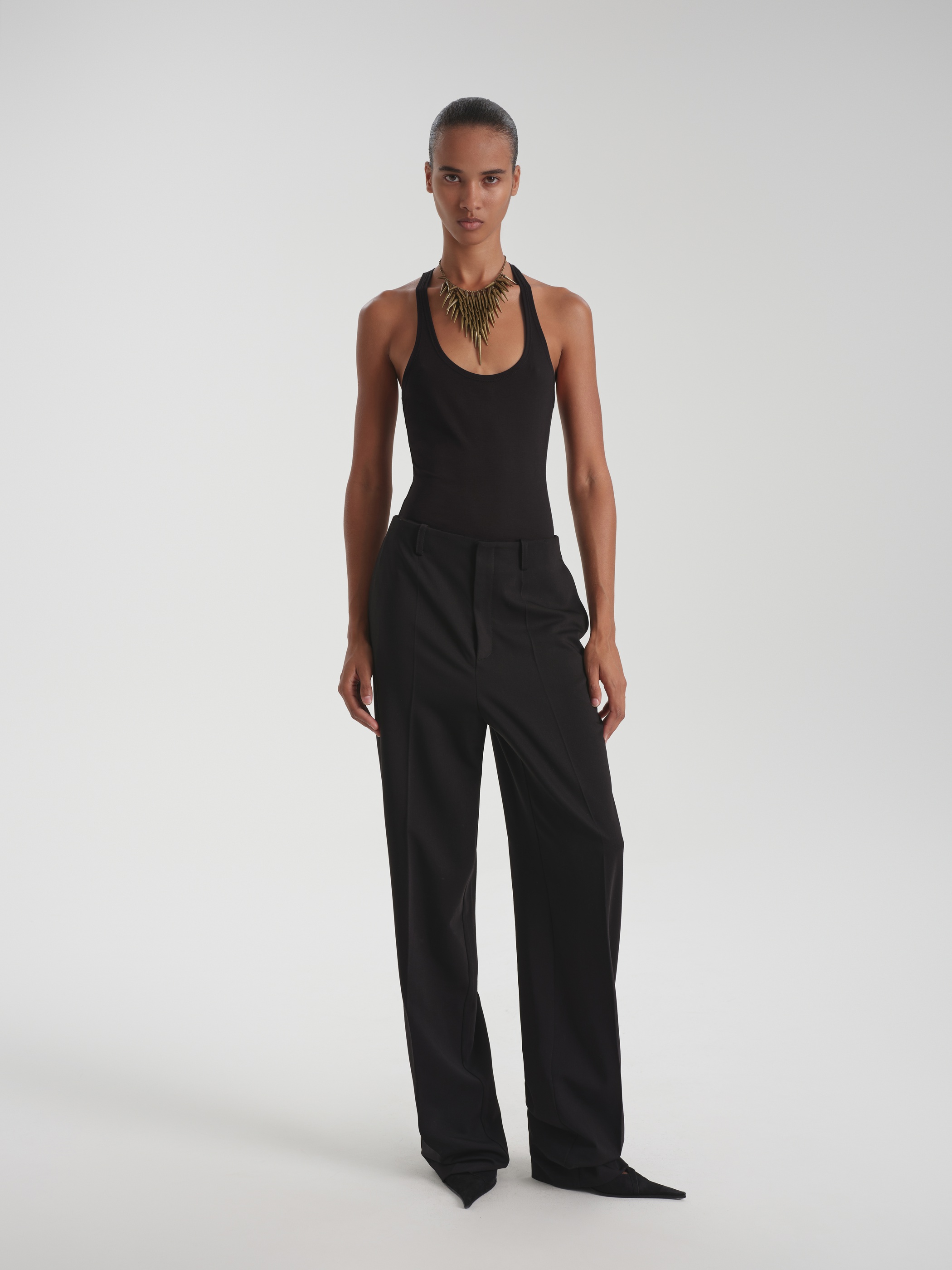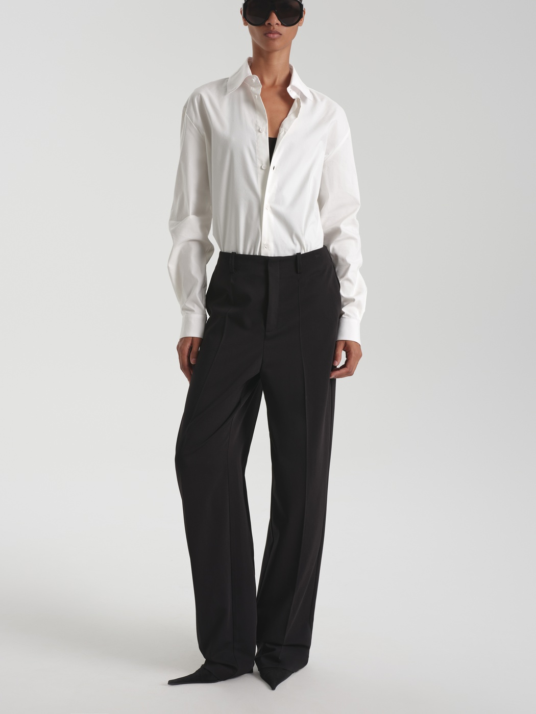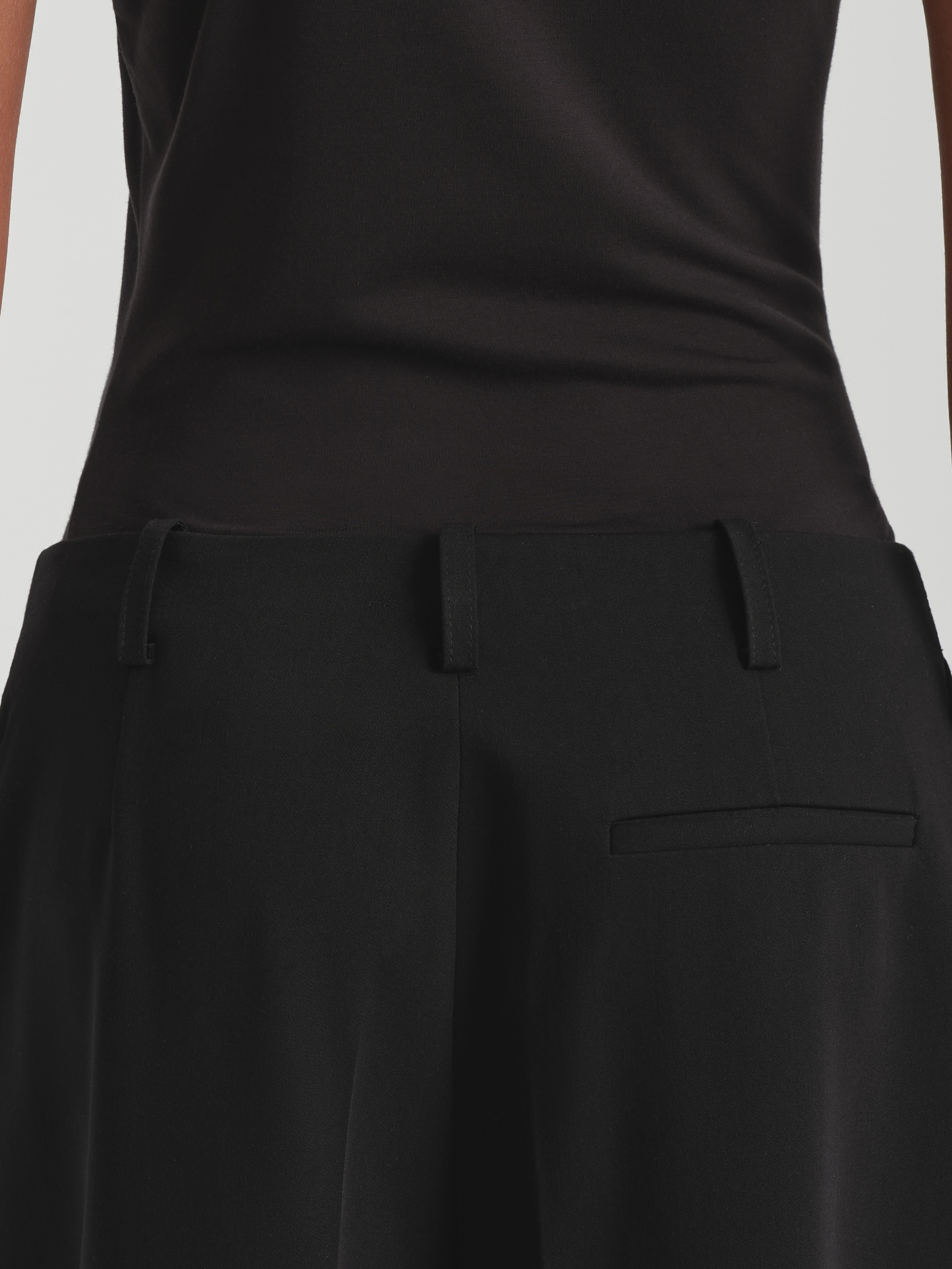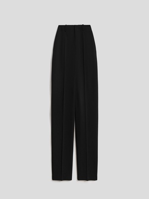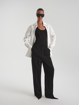 Универсальность, строгость и лаконичность – классическая модель брюк на средней посадке сочетает в себе все эти качества. Минималистичное изделие в сдержанном черном оттенке станет основой повседневных и деловых образов.