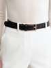 This classic belt in a deep chocolate color made of natural grained leather is an indispensable accessory in the wardrobe. The buckle is made in gold color.