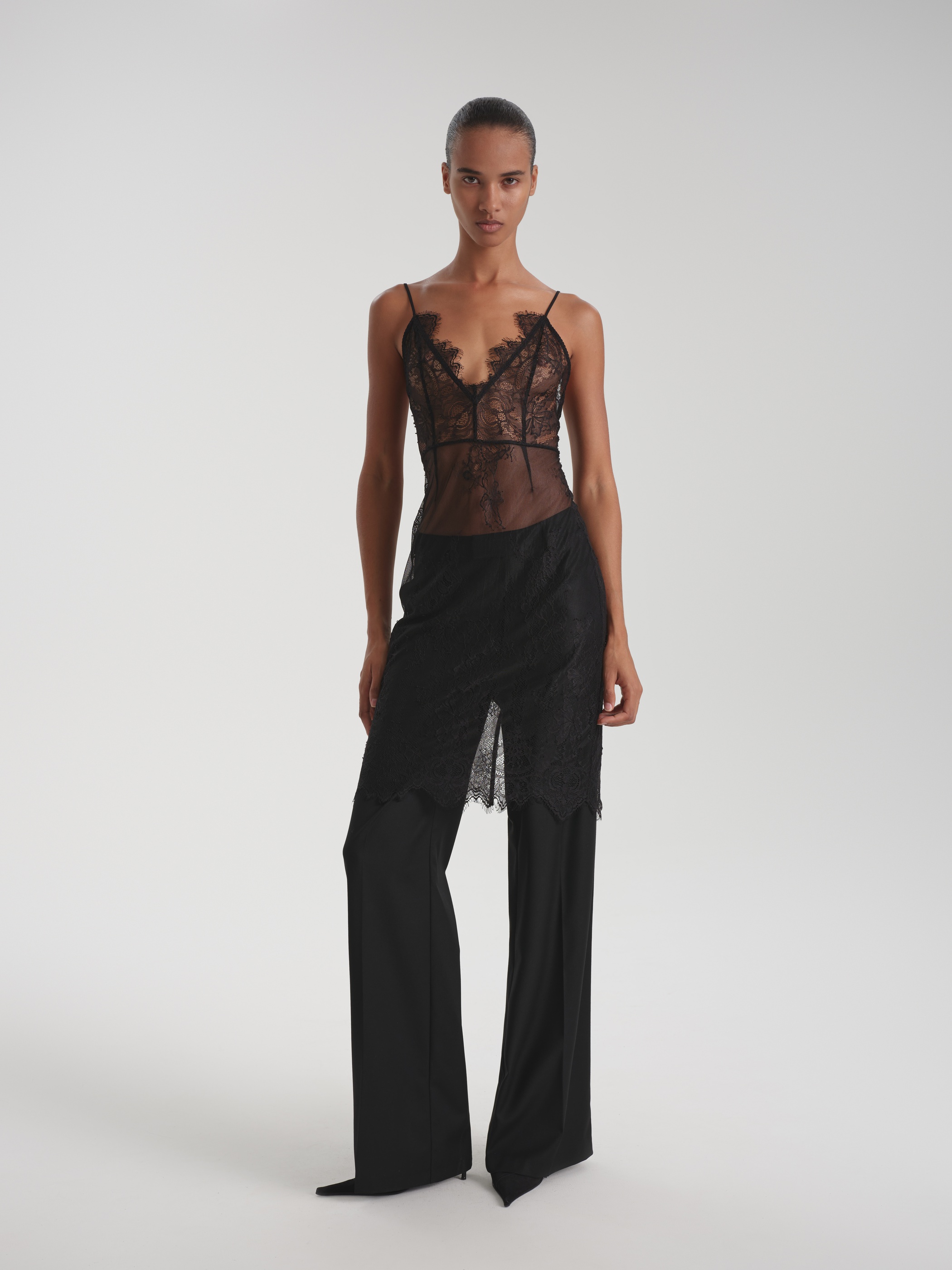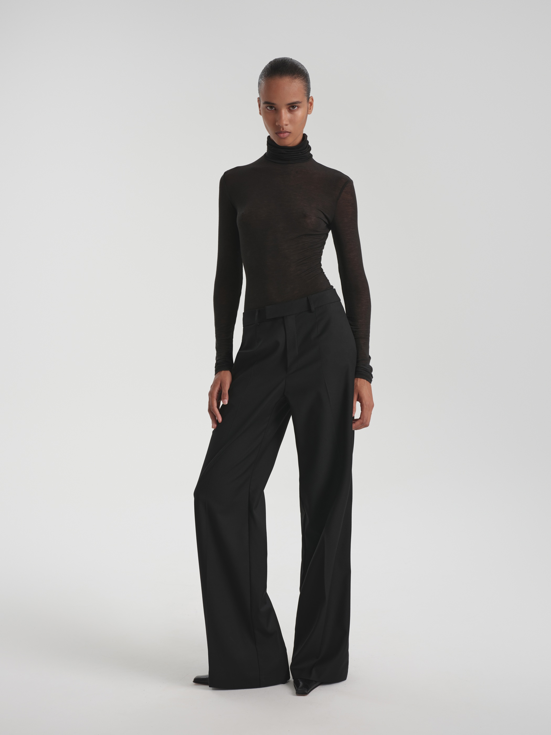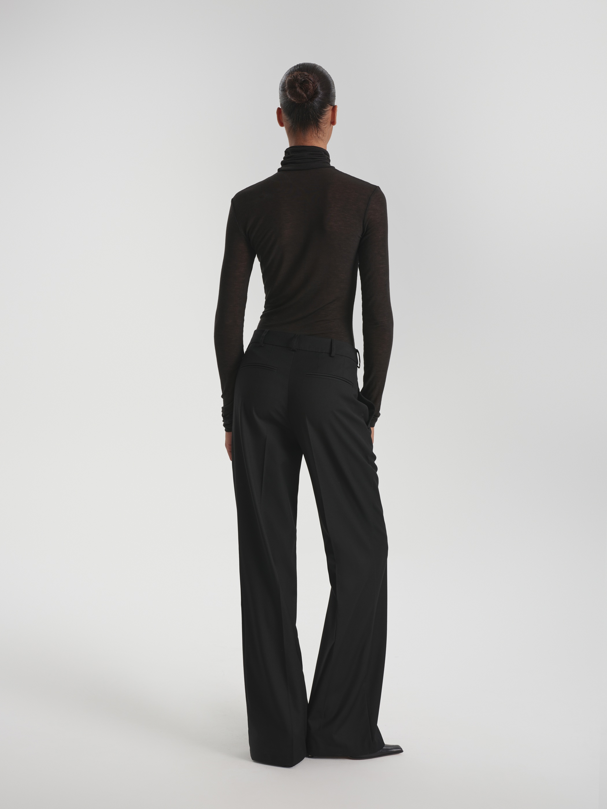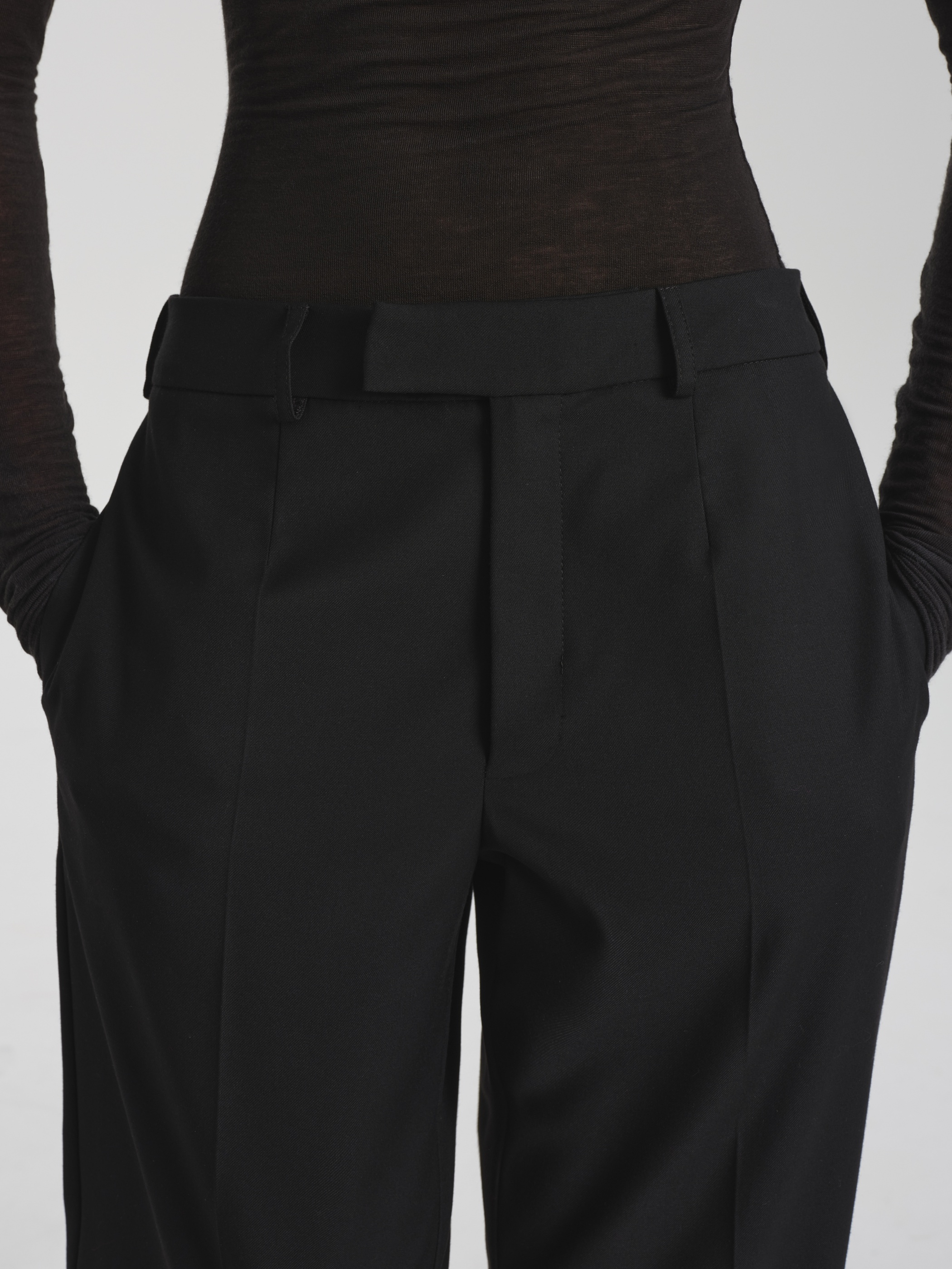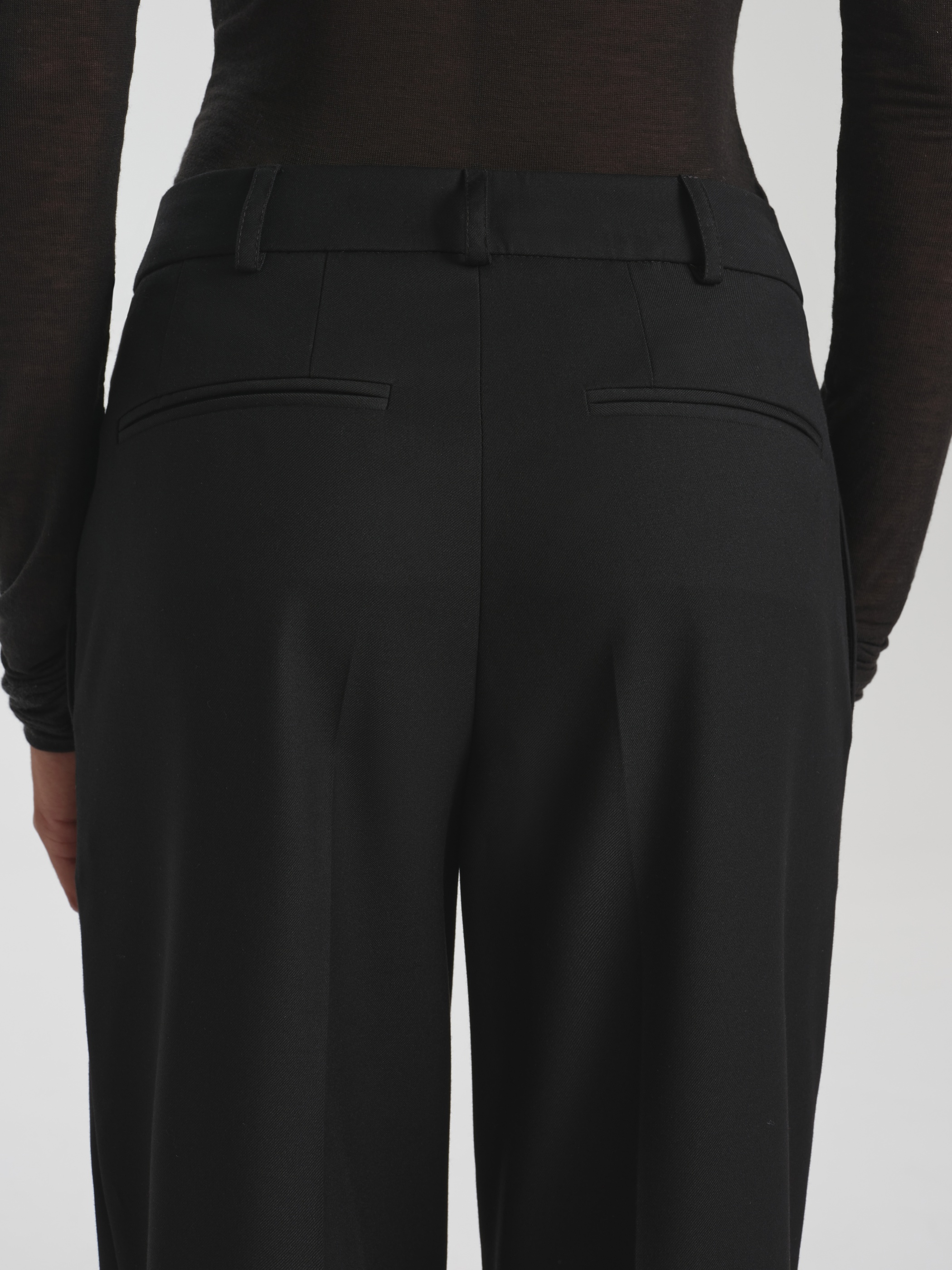 Flared trousers made suit fabric with a wool ensure an accurate fit and retain their shape. The material combines density with flexibility, without losing its structure during the day. The cut is balanced, with a slight extension from the knee. Complete with a jacket or shirt, it forms a strict, functional image of business style.