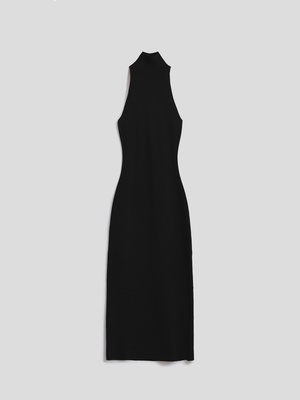 An elegant dress with an expressive stand-up collar and open shoulders is the epitome of modern femininity. The form-fitting midi-length silhouette perfectly fits the figure, emphasizing the elegance of the lines. The soft viscose jersey provides exceptional comfort and pleasant tactile sensations. The minimalistic aesthetics of the model allows it to become an ideal base for a capsule wardrobe — wear it with heels for special occasions or complement it with relevant accessories for everyday looks. The dress is available in black, milk and pink shades.