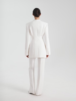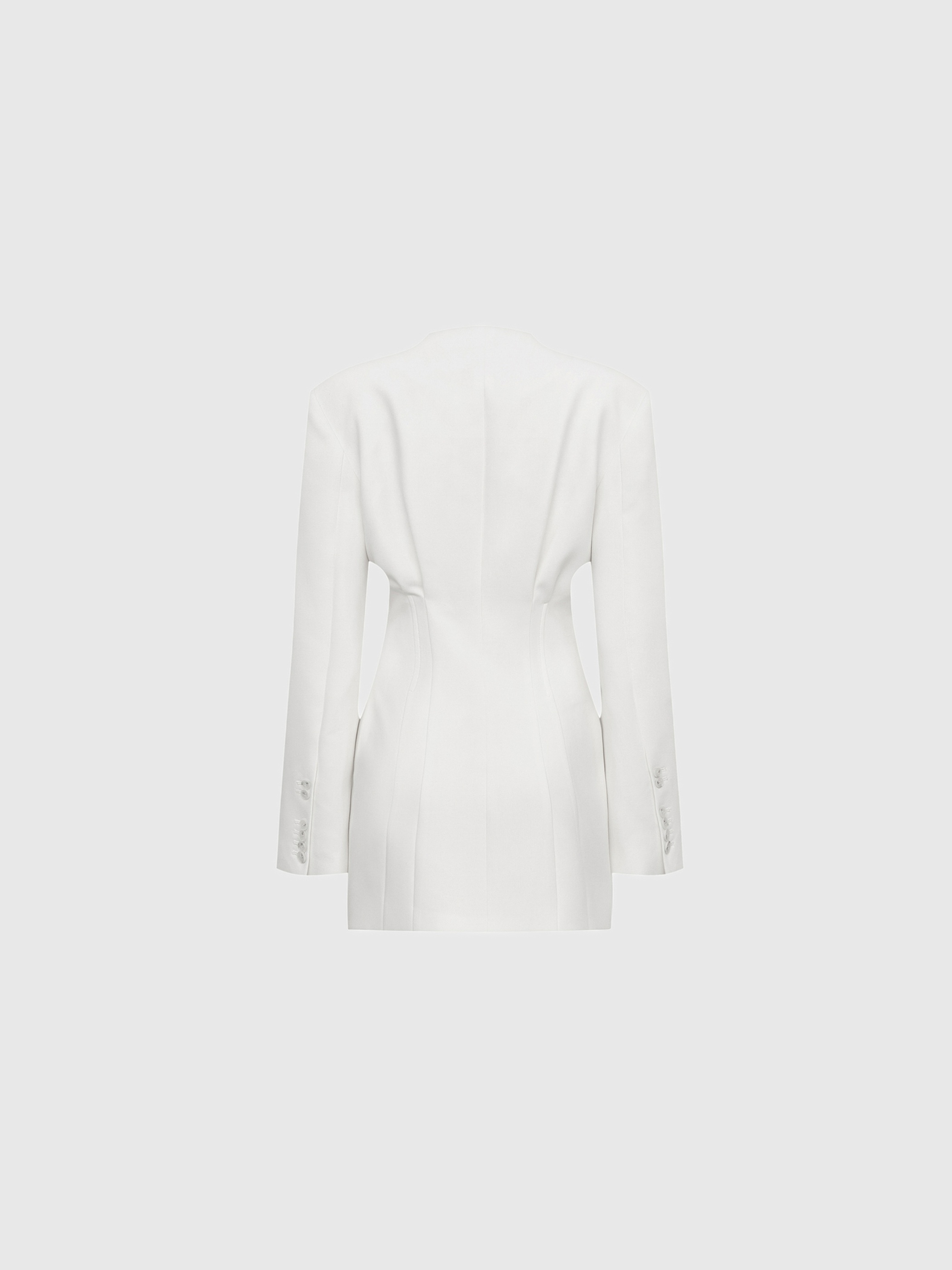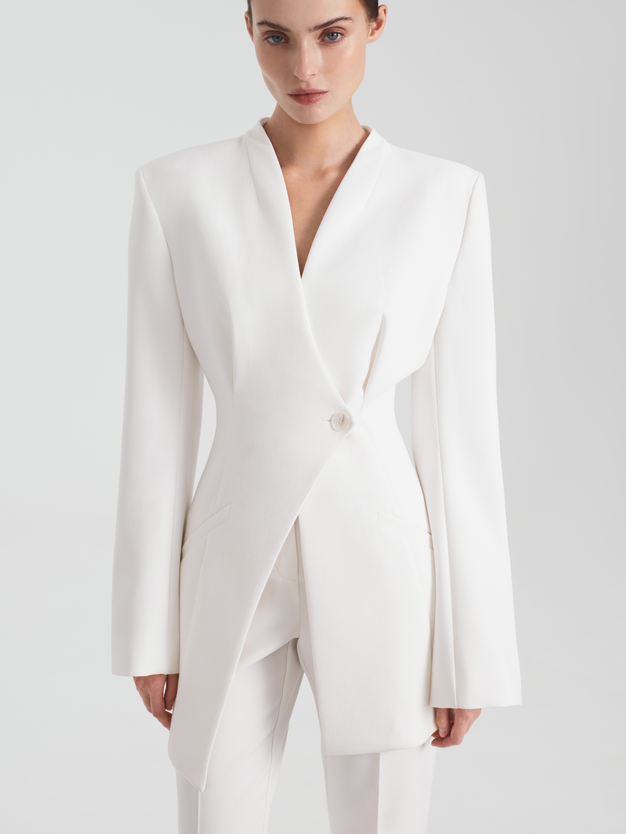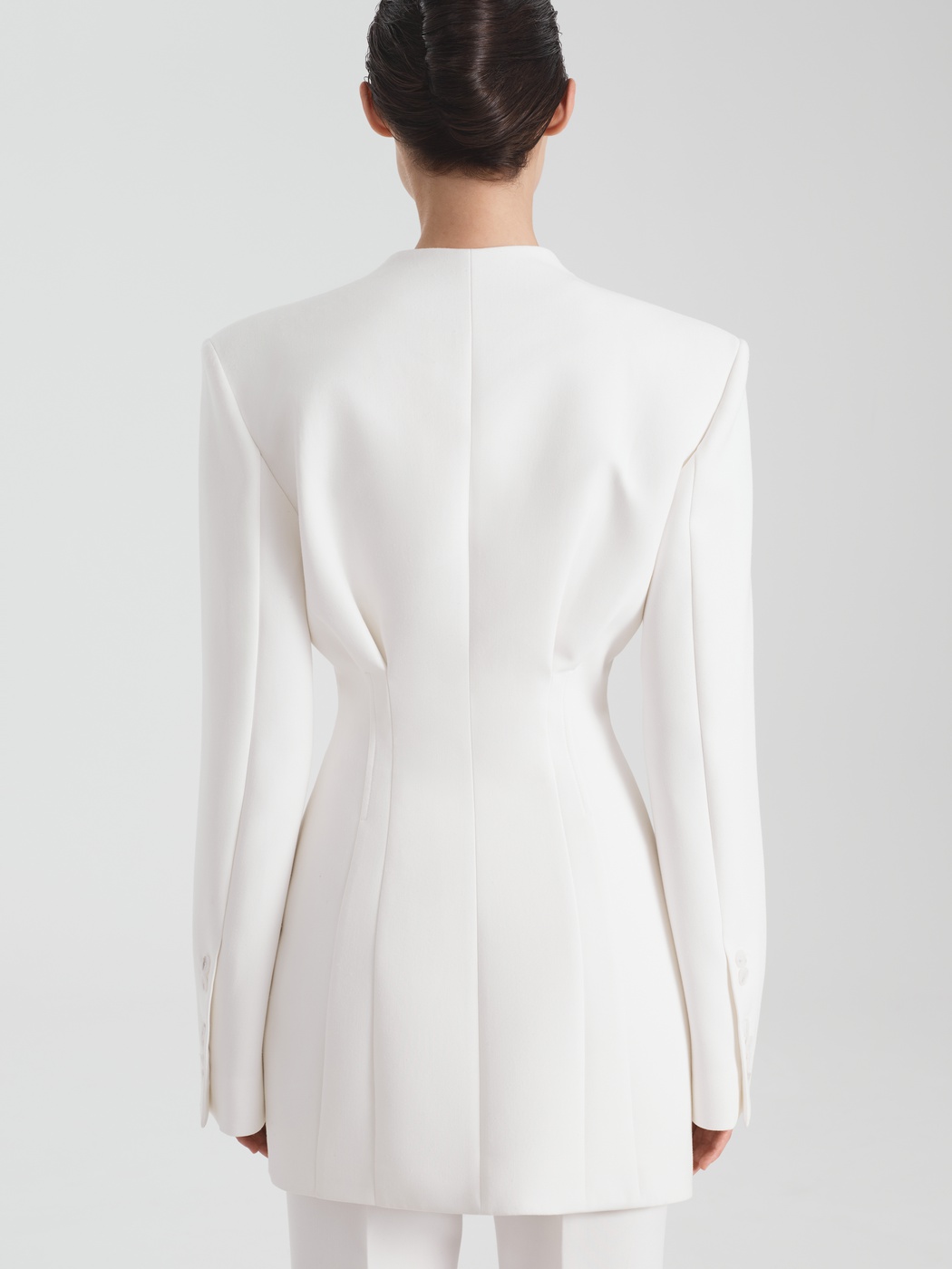 Oversize jacket with accent waist is a bestseller from the Namelazz brand. The model features a voluminous silhouette, a seamless stand collar, and an asymmetrical hem, creating a striking look. It is an ideal choice for stylish office and evening outfits.