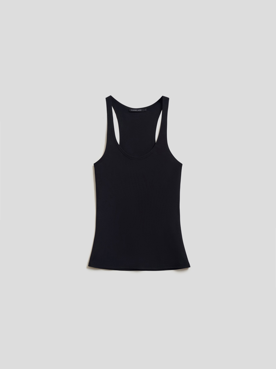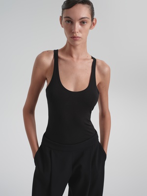 Майка, которая стремится к идеалу во всех деталях. Гладкая ткань, глубокие проймы, облегающий силуэт и широкие бретели делают ее универсальным дополнением любого образа.