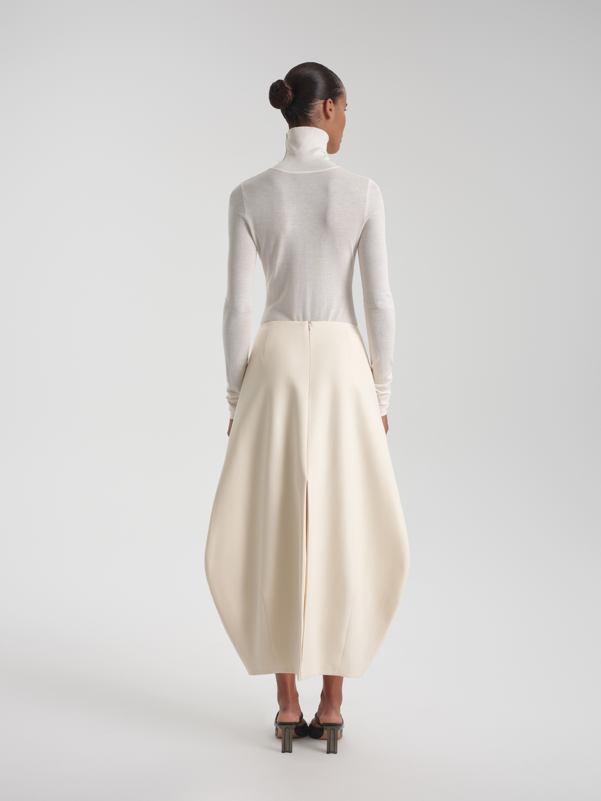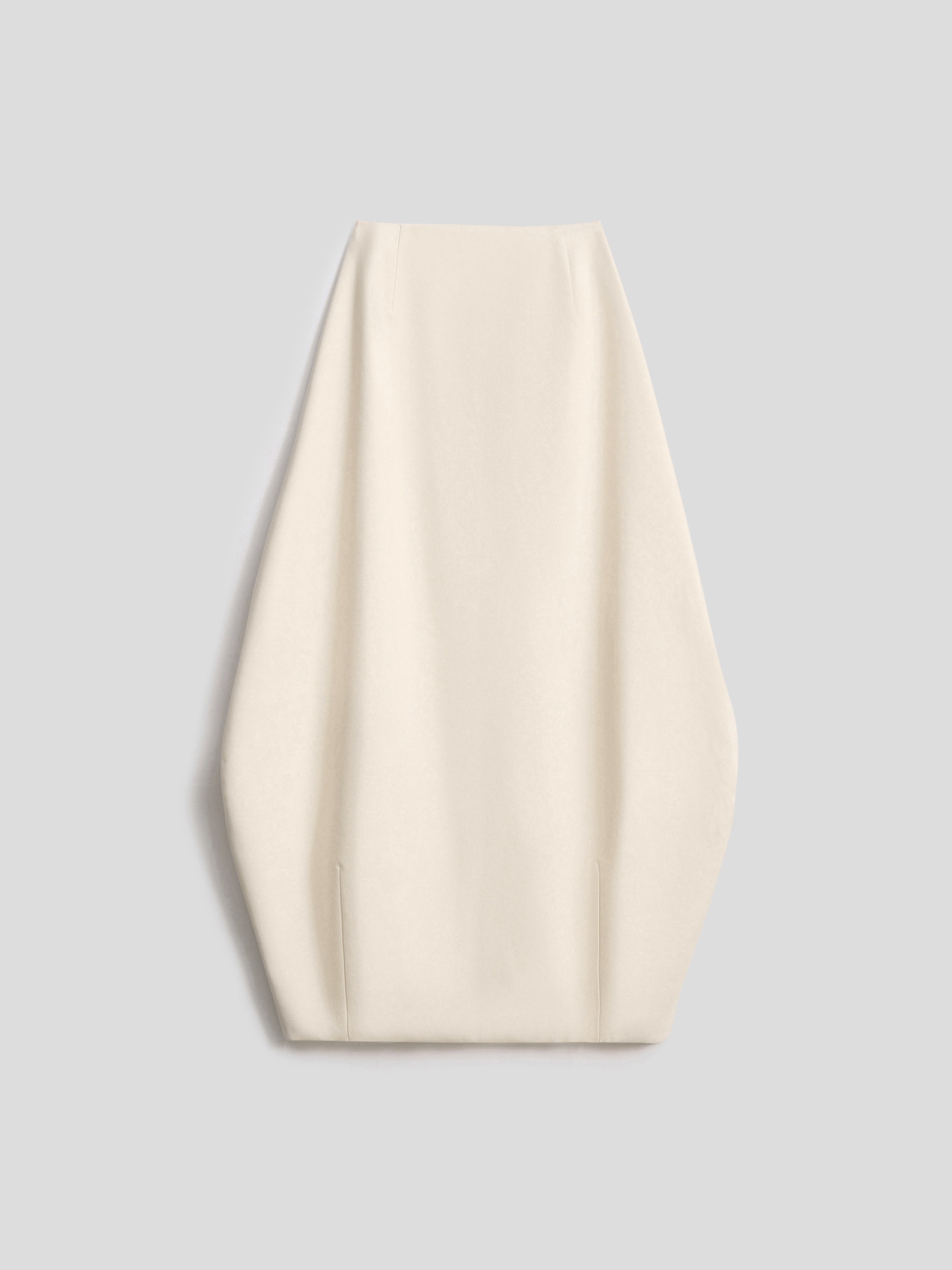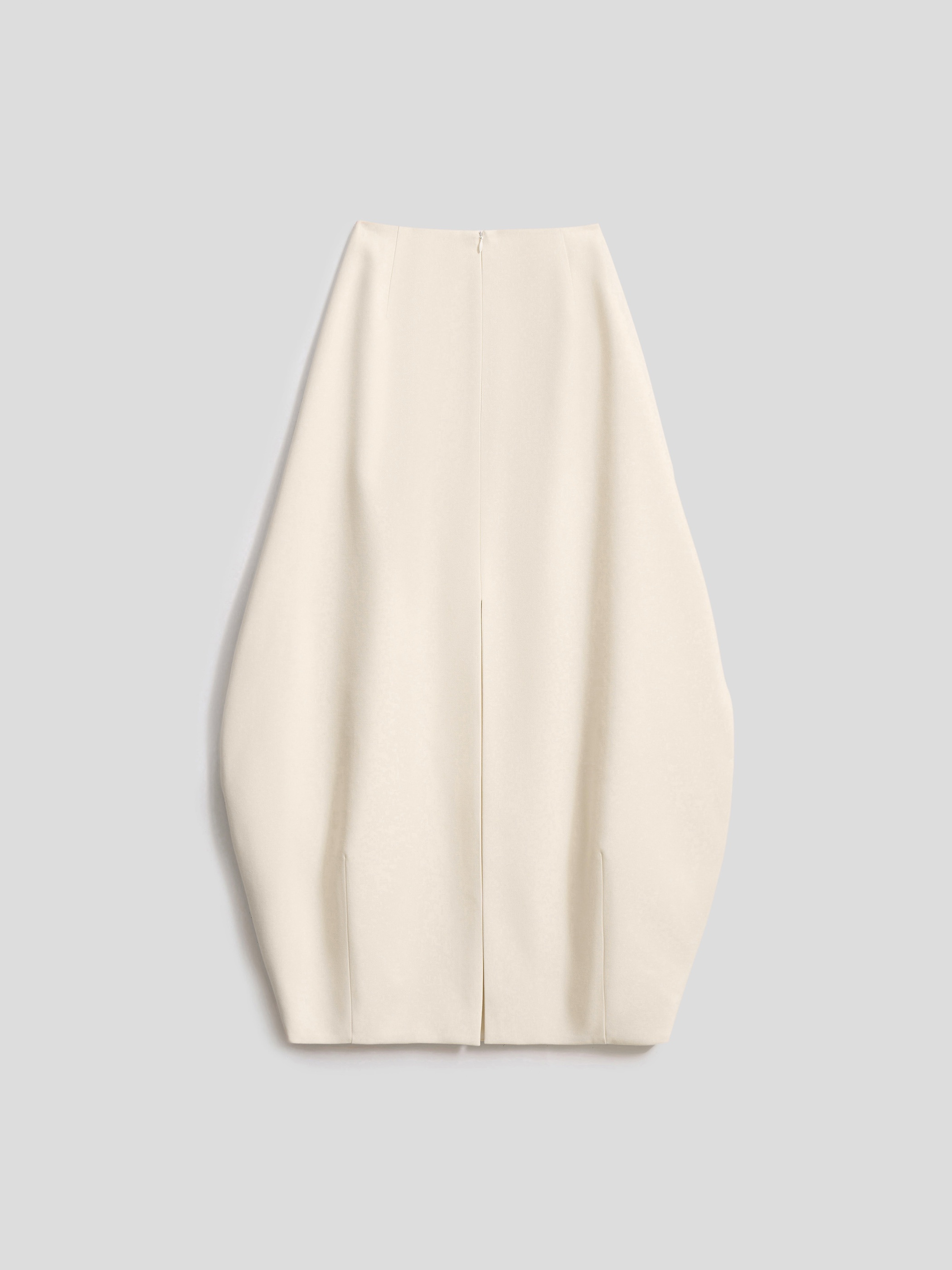 Юбка миди О-силуэта — выполнена в свободном крое с мягким расширением к центру и плавным заужением к низу. Модель имеет среднюю посадку, что обеспечивает комфортную носку. Средний шов на спинке с разрезом и потайной молнией добавляет удобства и легкой подвижности. Универсальная длина и лаконичный крой делают юбку подходящей для создания современного и элегантного образа.