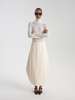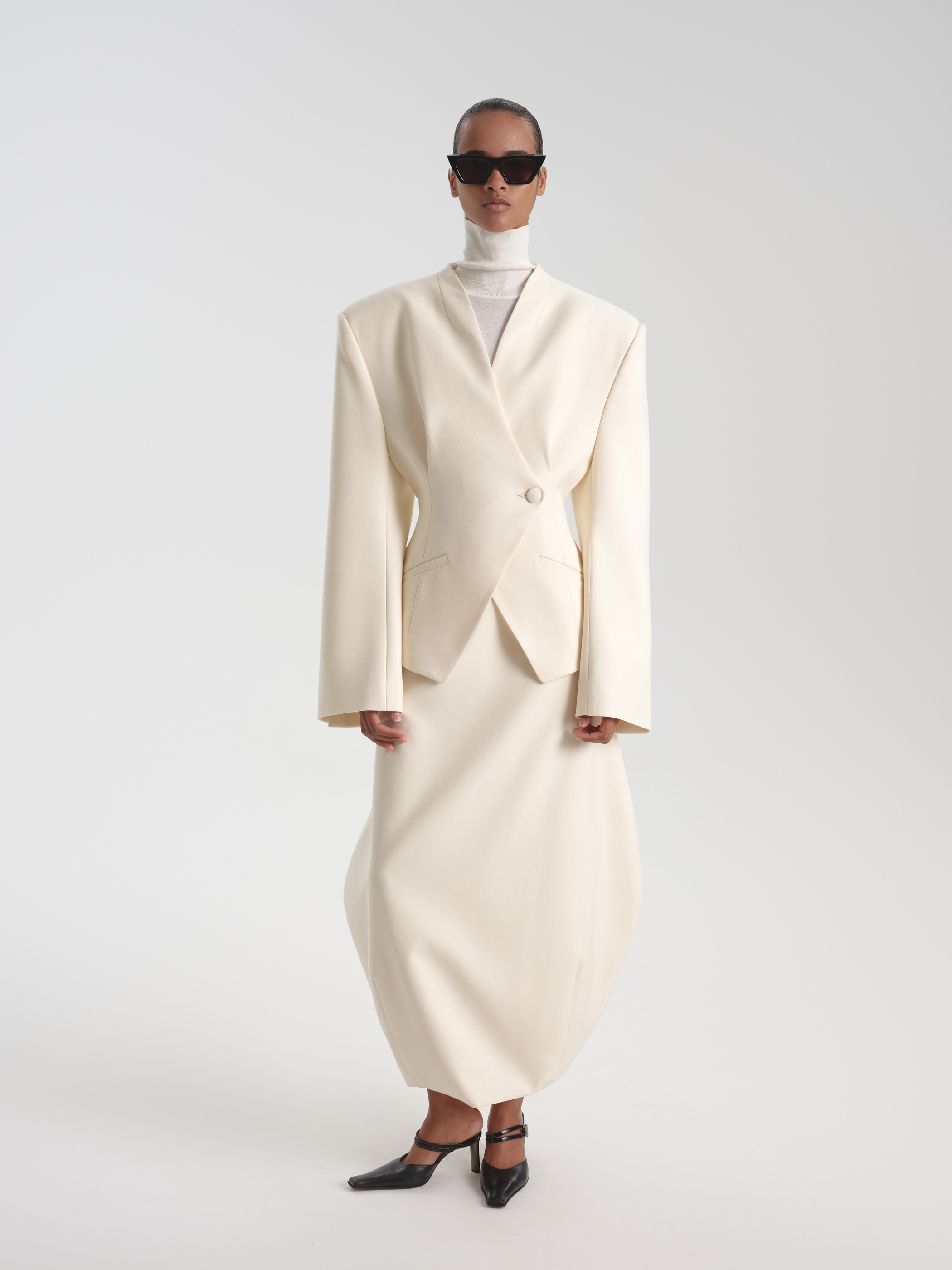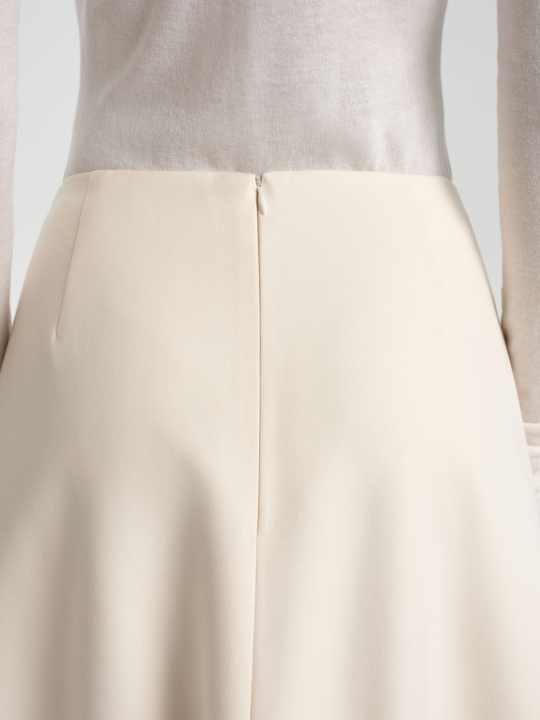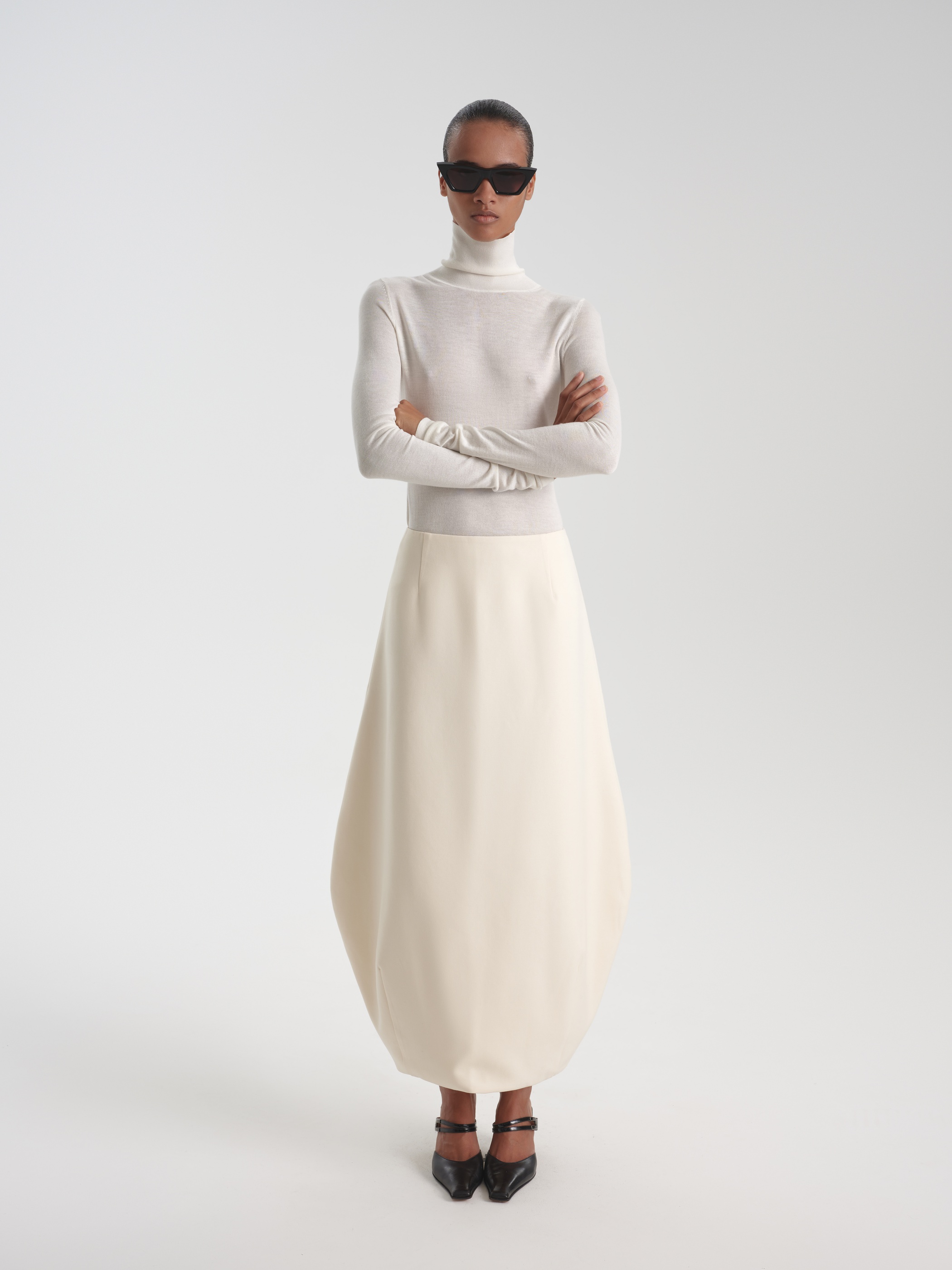 Юбка миди О-силуэта — выполнена в свободном крое с мягким расширением к центру и плавным заужением к низу. Модель имеет среднюю посадку, что обеспечивает комфортную носку. Средний шов на спинке с разрезом и потайной молнией добавляет удобства и легкой подвижности. Универсальная длина и лаконичный крой делают юбку подходящей для создания современного и элегантного образа.