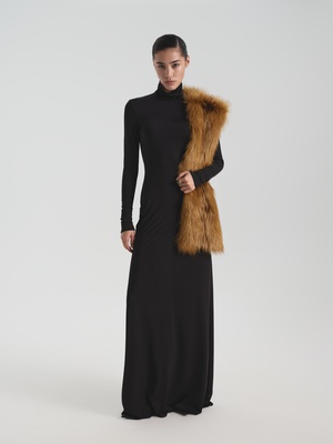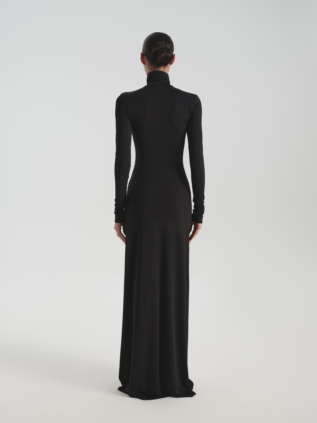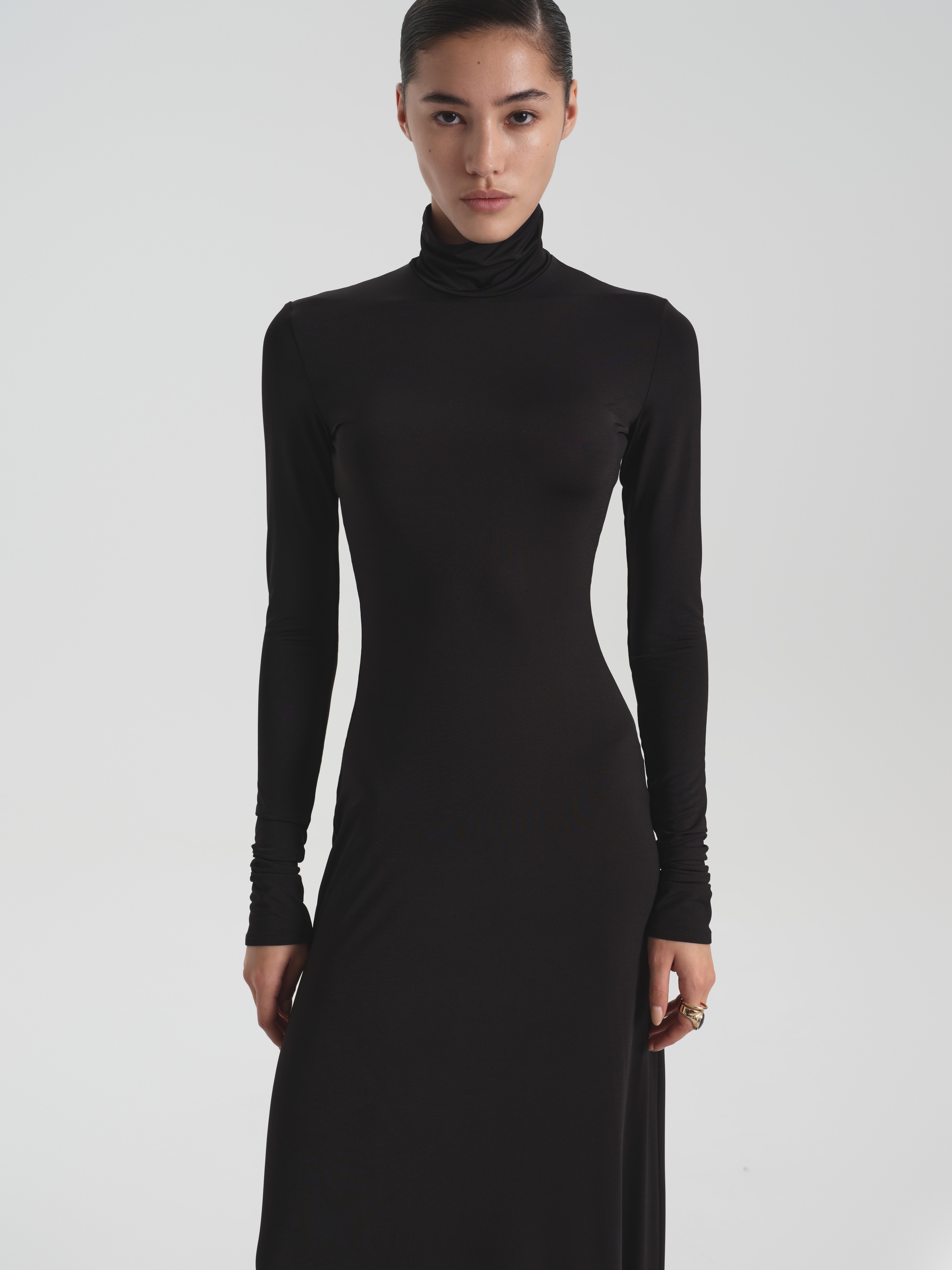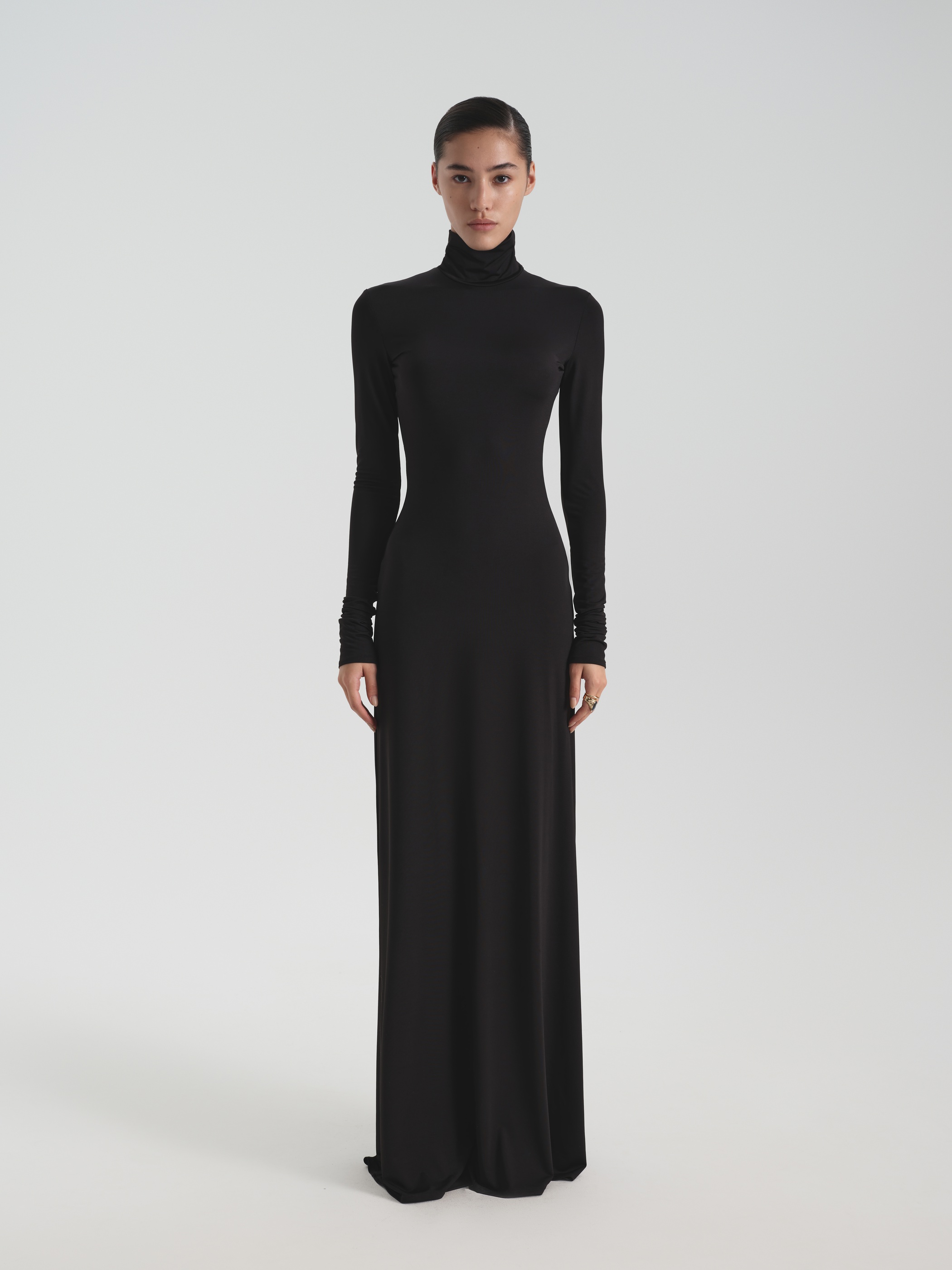 Платье-водолазка – особое изделие, которое в новой коллекции представлено в альтернативном цвете. Длина макси, прилегающий силуэт, тонкая и тактильно приятная ткань – модель, с помощью которой вы сможете создать полный гармоничный образ.