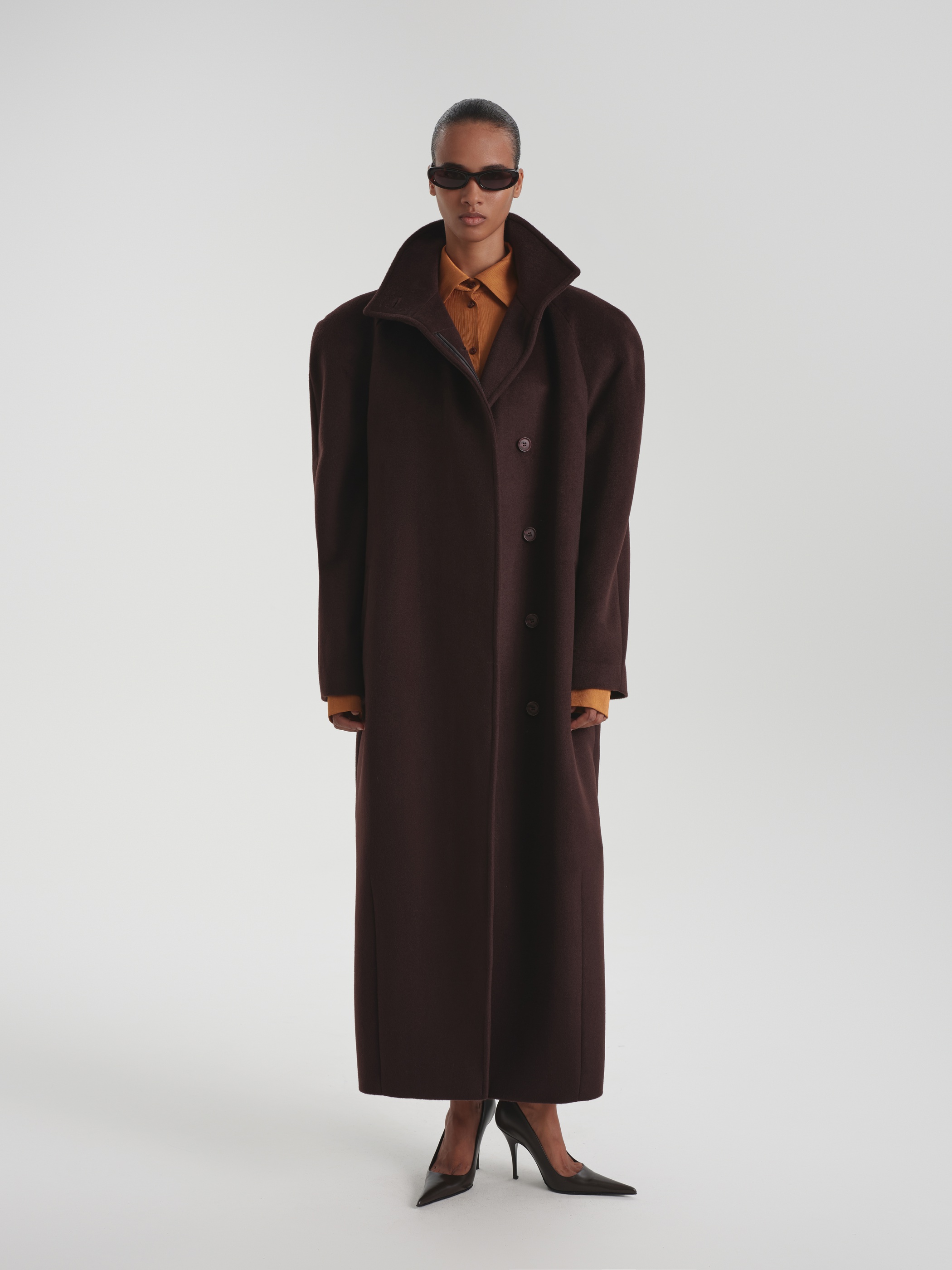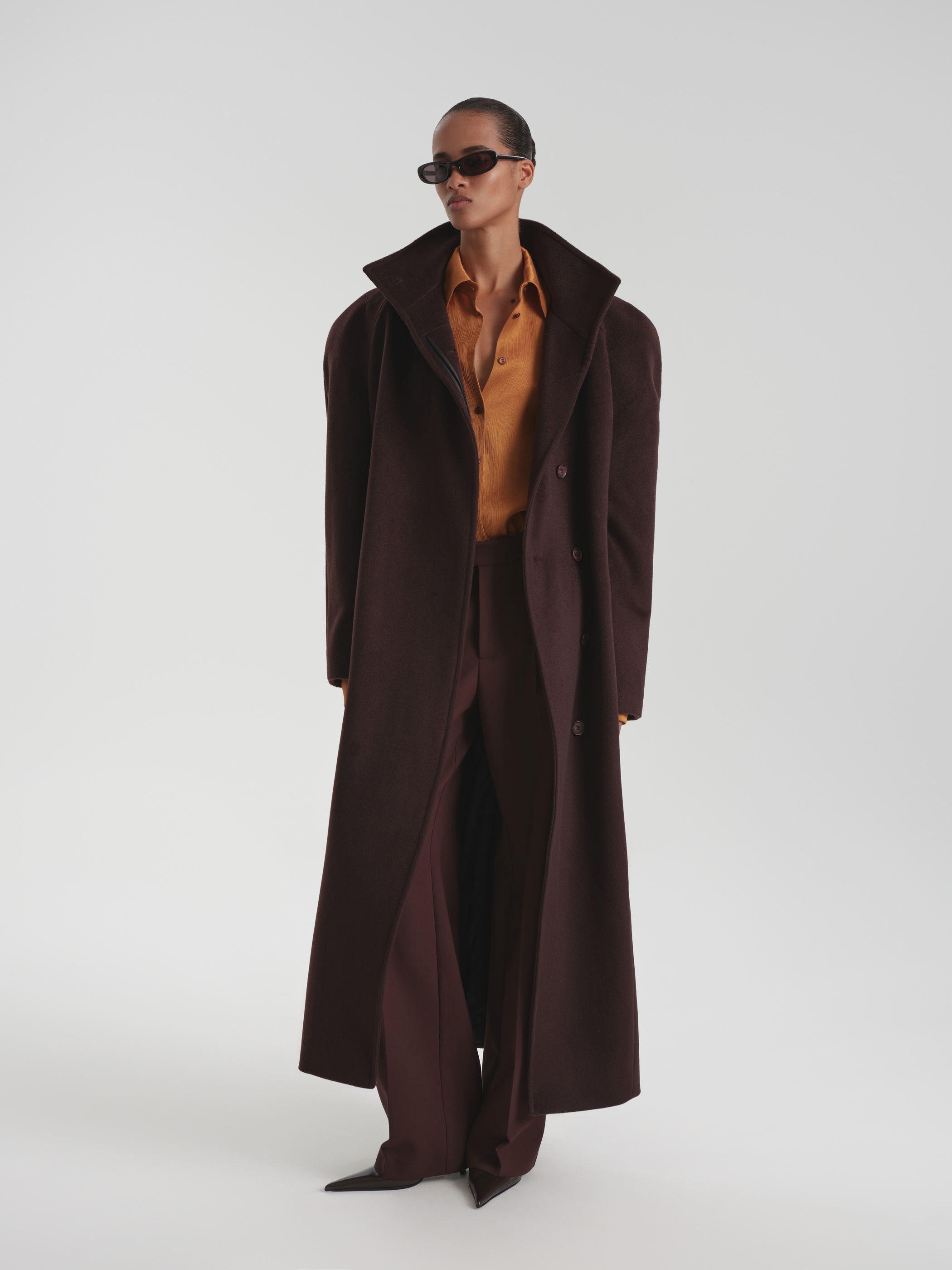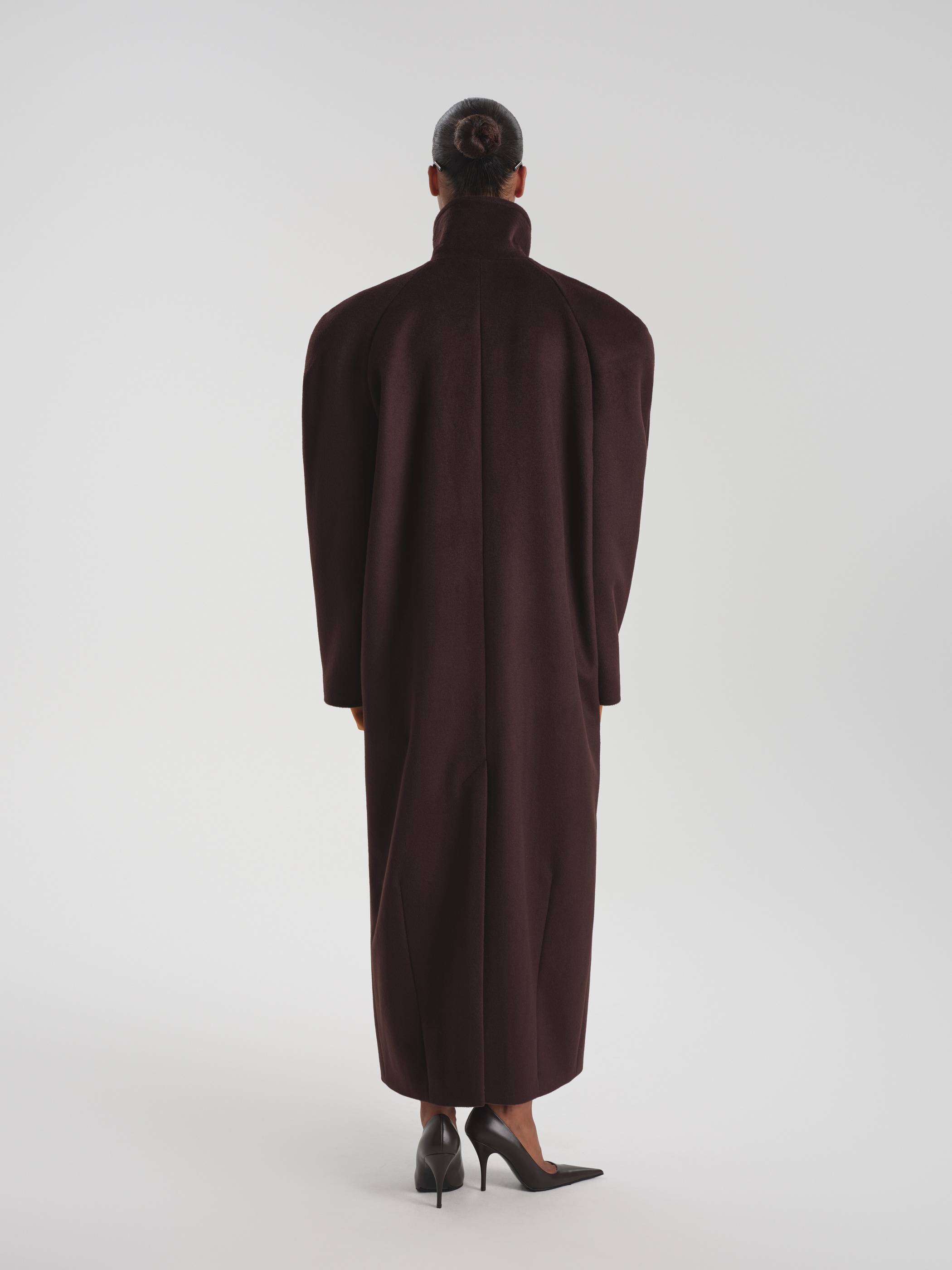 Пальто кокон — это новый взгляд на классические силуэты пальто NAMELAZZ. Модель имеет объемный свободный верх, который дополняется акцентными подплечниками, плавные линии силуэта и сужается к низу, что позволяет лучше сохранять тепло. На изделии предусмотрена потайная застежка. Изделие дополнено прорезными карманами и шлицей сзади — эти детали придают универсальность и комфорт в носке.