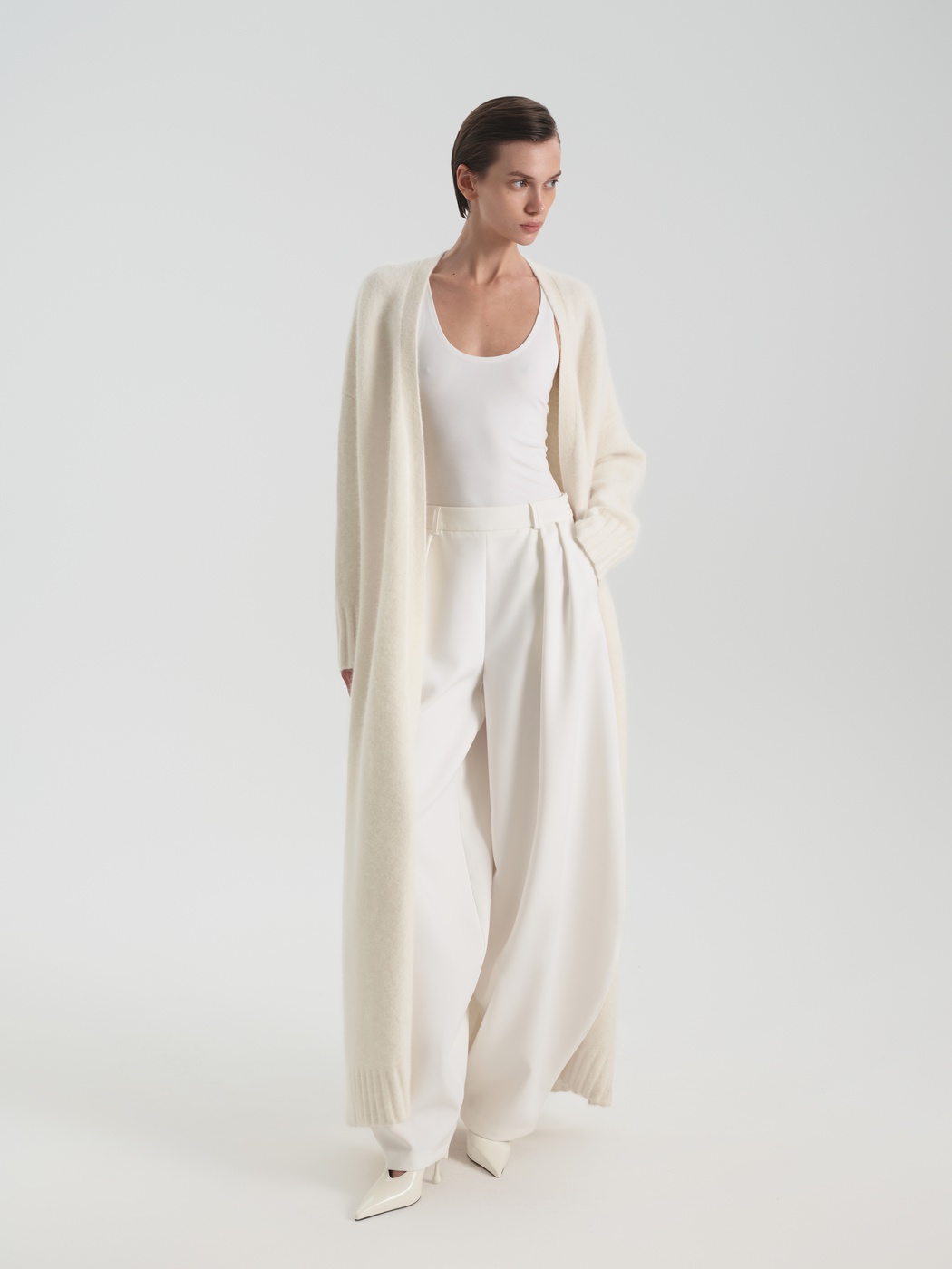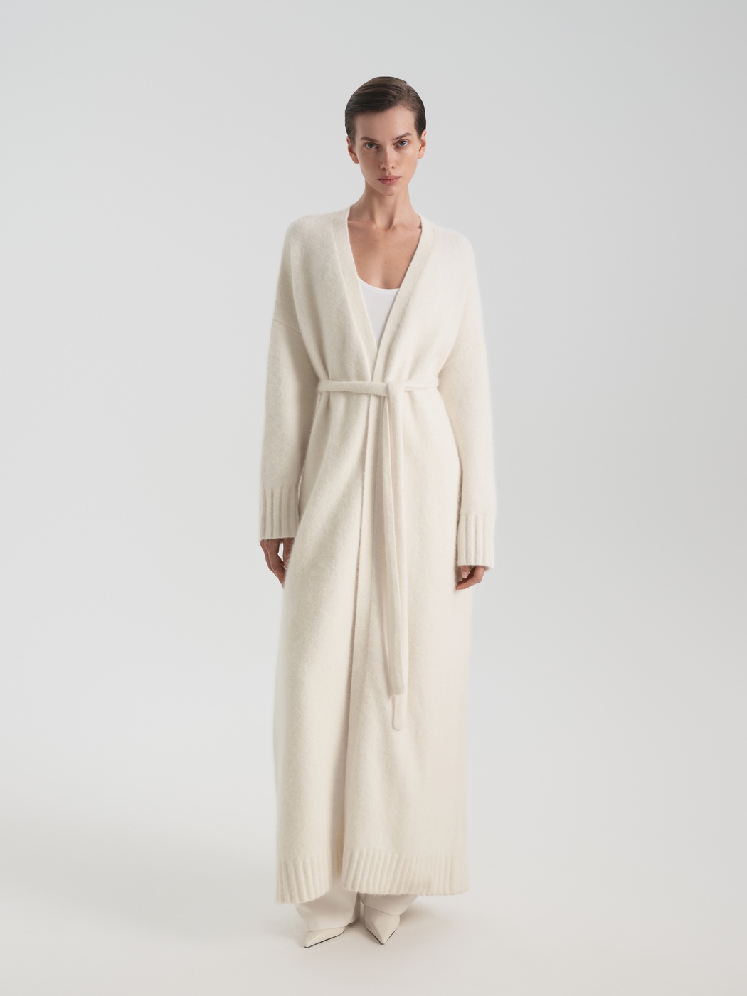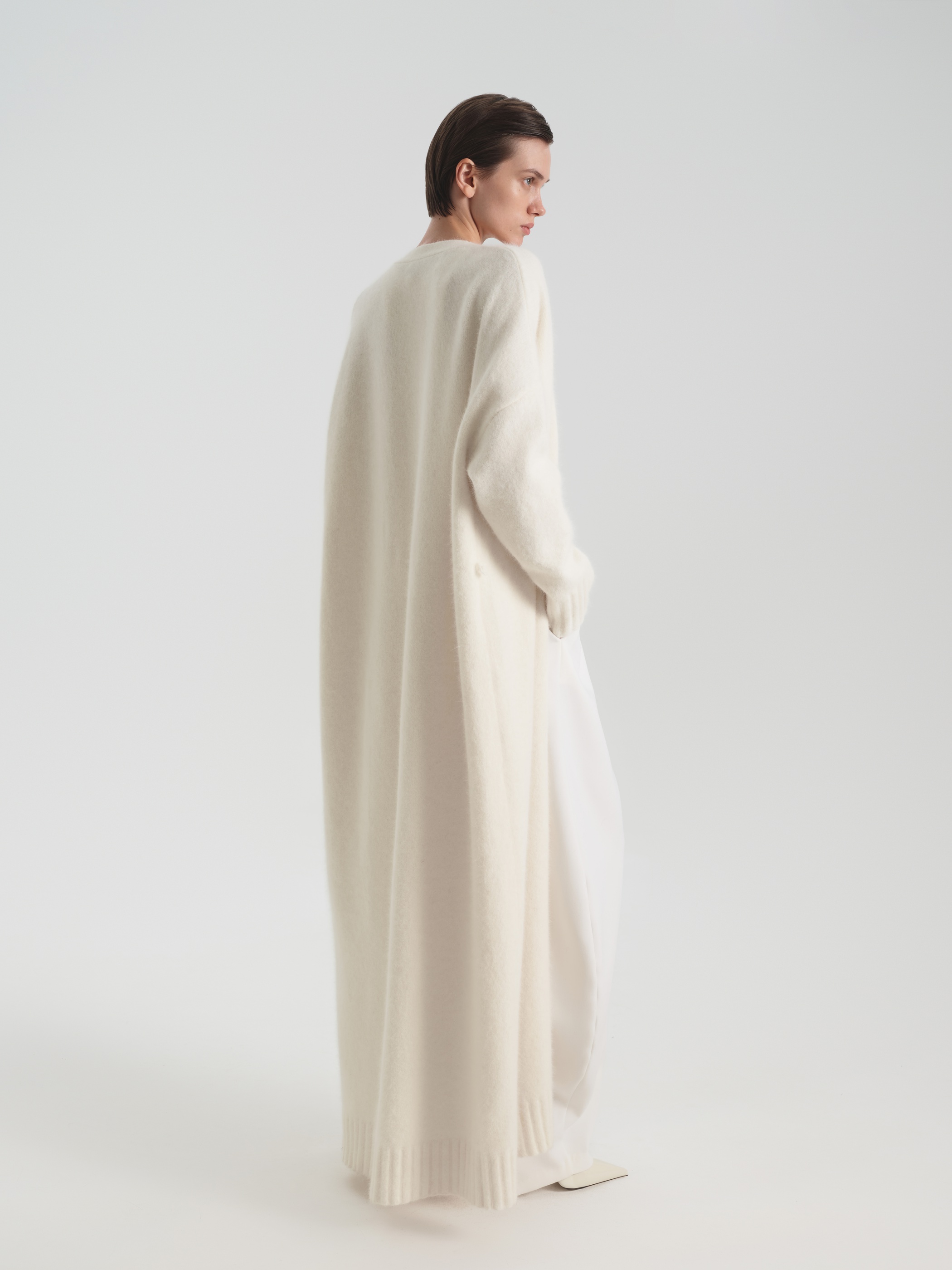 В данной модели мы уделили особое внимание составу пряжи. Материал состоит из шерсти разных текстур: ангора придает мягкость, шерсть – дополнительную защиту от холода, нейлон – упругость, а спандекс – эластичность. В итоге у нас получилась модель с вниманием как к визуальным данным, так и к комфорту.